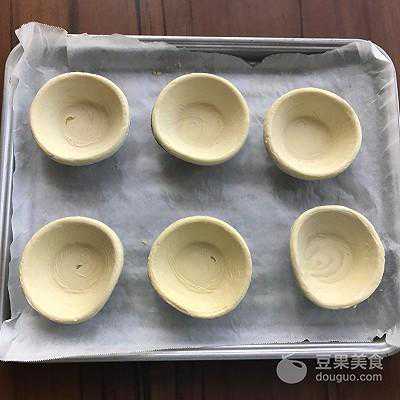 4、挞皮起酥后从烤箱取出,去除挞托。