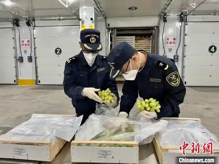 中新网东莞(唐贵江濮关)临近春节,随着年货采购季的到来,水果进口量也达到了高峰。在1月1日,东莞港迎来了首票自智利进口的车厘子后,秘鲁的无籽青提,新西兰的奇异果也随即抵达,这些水果经黄埔海关所属沙田海关监管放行后,直接从东莞港提货至进口商在东莞茶山的水果分拣中心,再销往全国各地。