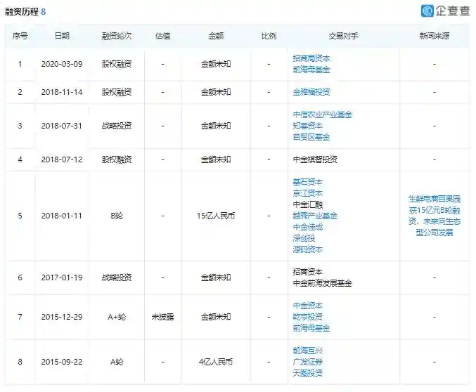 据“天眼查”披露,百果园已历经8轮融资,估值超600亿,投资者包括先驱投资、金雅福投资、知春资本、基石资本、中金公司、天图投资、广发信德和前海互兴等。