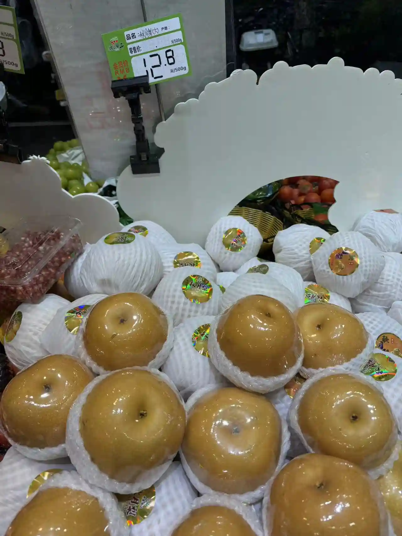 快乐购超市,秋月梨零售价每斤5.98元。陈佳摄