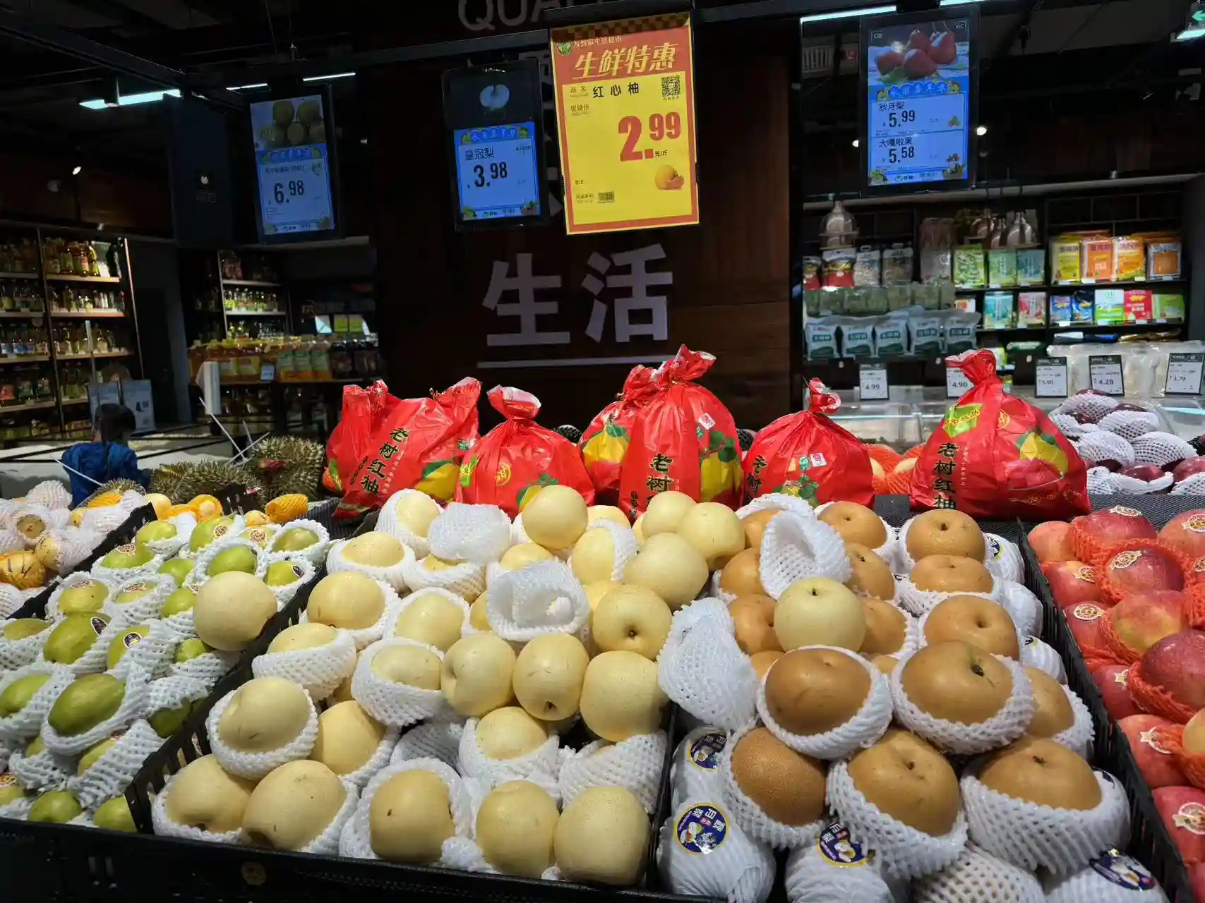 发到家超市的秋月梨零售价每斤5.99元。陈佳摄