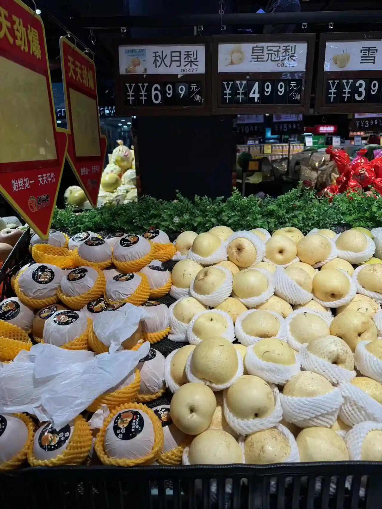 在欧润达超市,秋月梨零售价每斤6.99元。最便宜的梨是翠冠梨,正在做每斤1.99元的促销活动,而最贵的梨为特级香梨,每斤7.99元。