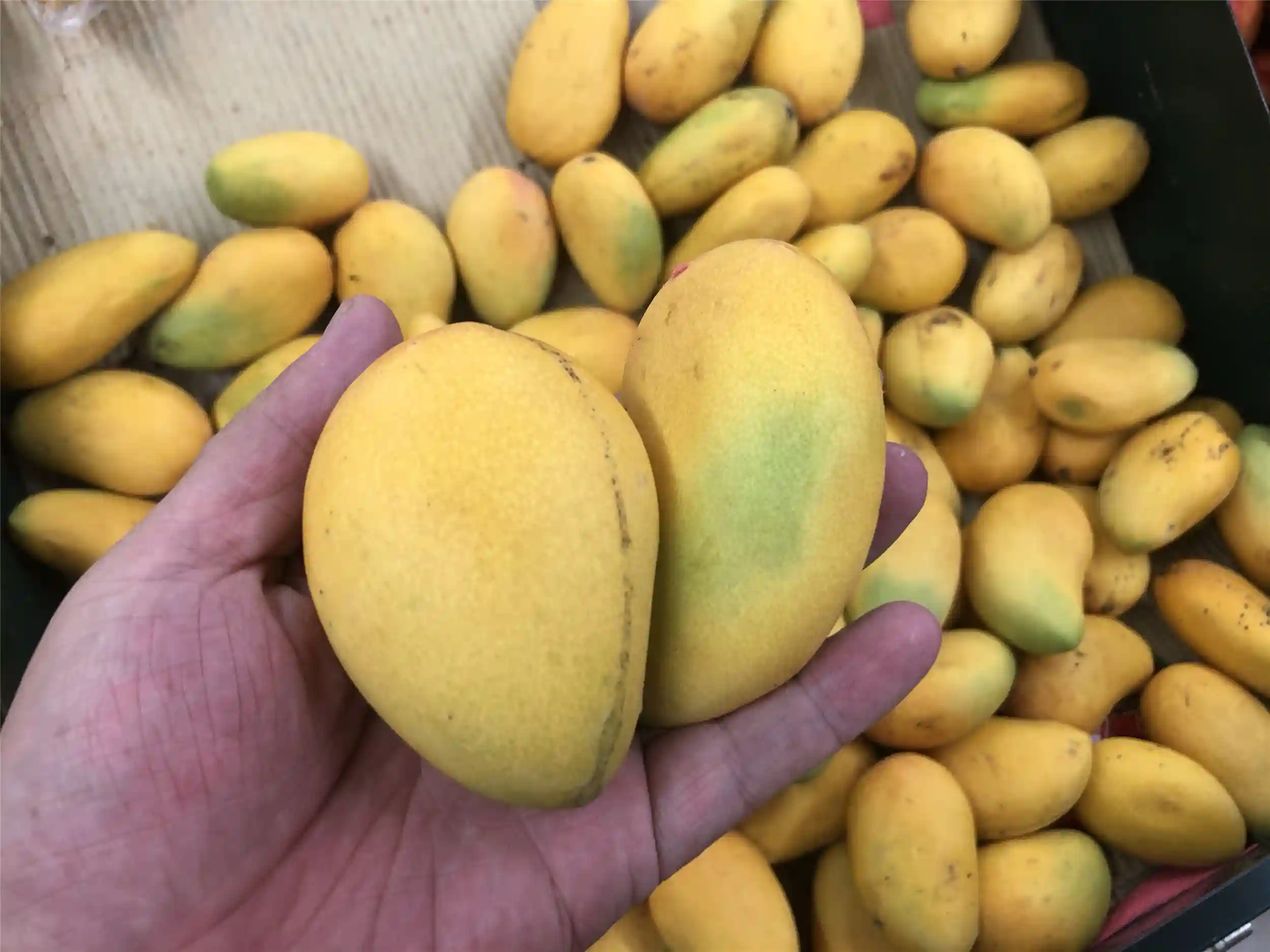 芒果是典型的热带水果,最佳储存温度是10-13摄氏度之间,在不高于25度的室温下也可以很好的保鲜,但不耐低温,在冰箱的冷藏室中储存一段时间后,就会受到低温的冷害作用,表皮长出黑点,发生变质腐烂等情况。