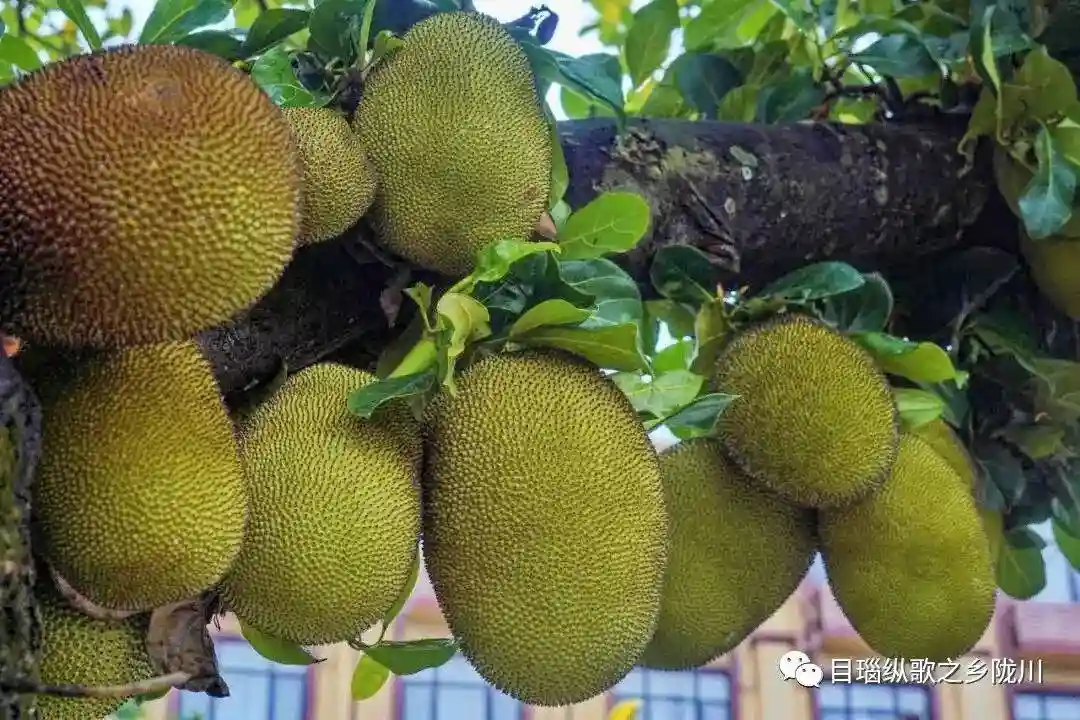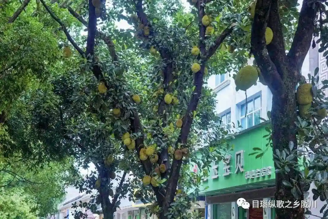 路边一棵棵菠萝蜜树、芒果树
