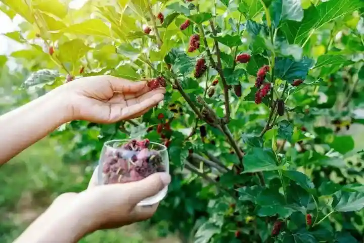 俗语有小满桑葚黑,小满之后正值桑葚成熟,采摘热季。