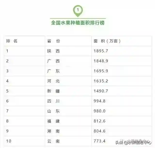 苹果可谓是陕西果业的代名词,中国苹果产量占到全球1/2,而陕西苹果占到了中国苹果的1/4,也就是说陕西的苹果能占到全球的1/8。有数据显示陕西的水果种植面积是全国第一。
