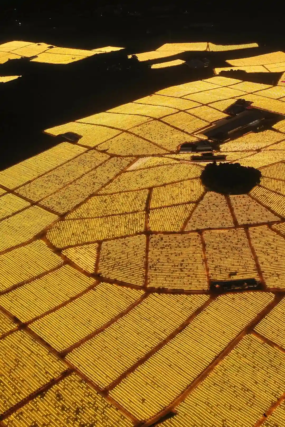 广西恭城莲花镇朗山村,十分壮观的晒柿饼景象。