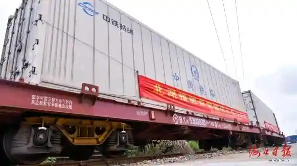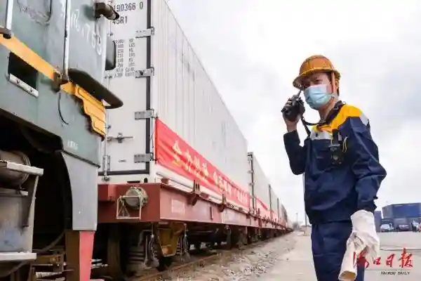 3月16日11时55分,10958次冷藏集装箱货物列车从海口南站出发,驶向湖北省荆州市。这是海南建省史上首趟冷藏集装箱铁路班列,也是海南第三趟支援湖北防疫生活物资铁路专列。