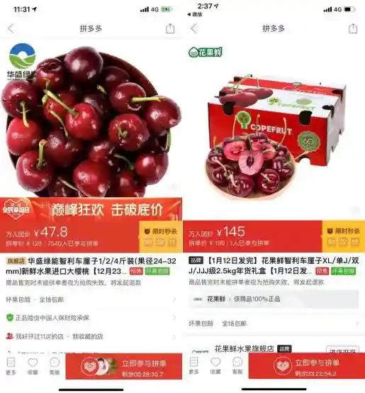 “百亿补贴”切中新消费,“万人团”卖爆车厘子