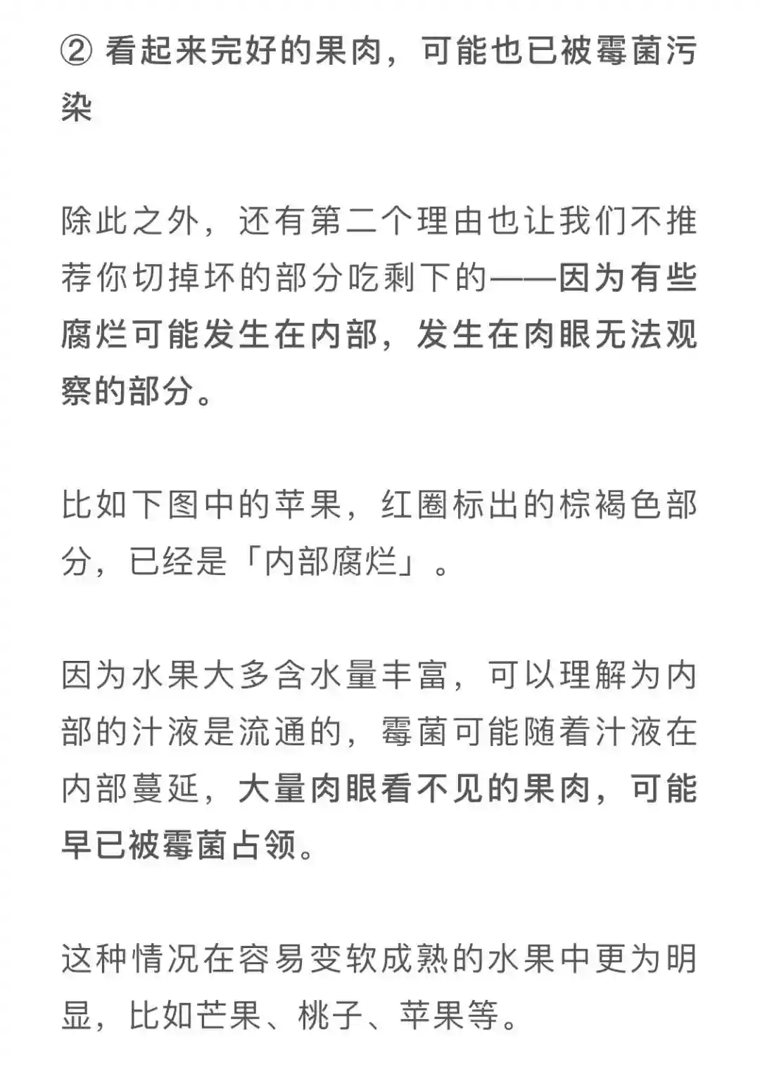 尤其是很多长辈没有意识到,在不知不觉中习惯吃坏掉的水果,哪怕切掉烂的部分,并不能阻止「烂从口入」……