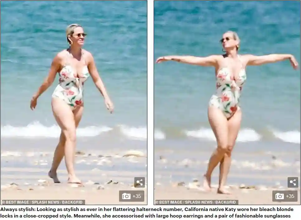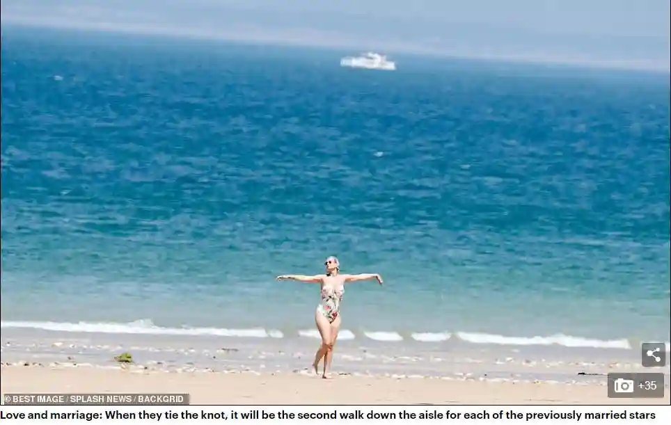 在本周一,34岁的水果姐(KatyPerry)和42岁的未婚夫奥兰多·布鲁姆共同现身法国西部地区雷岛的黄金海岸。水果姐身穿白色花饰比基尼,面部佩戴了一款金色墨镜和走在海边,丈夫奥兰多布鲁姆则上身赤裸仅仅穿着一条短裤。