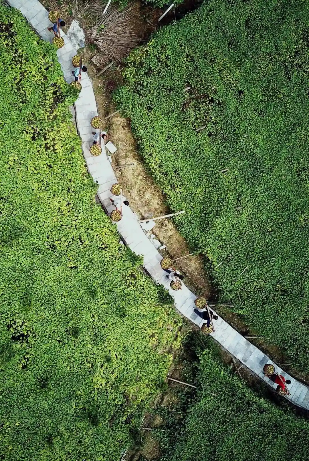 果农用小船来运输采摘后的融安金桔,很广西的运输方式。