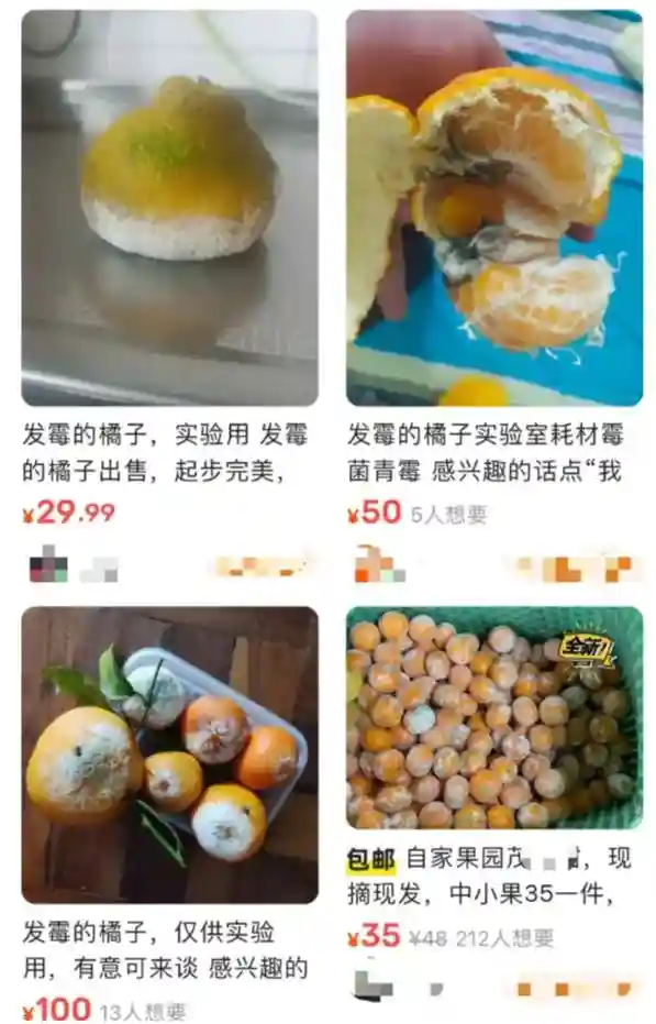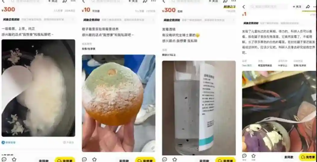 而颇高的网络热度也让一些人看出了里面的经济利益,便催生了闲鱼上的霉菌生意,在闲鱼上你可以看到许多挂售发霉物品、食品的卖家。