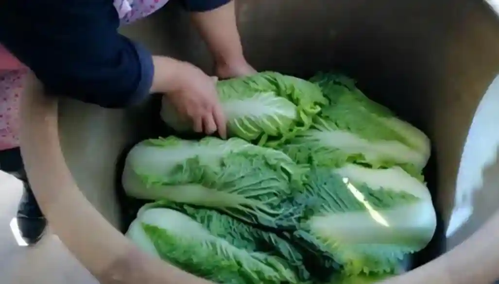 每年到了秋冬,东北白菜大量上市的时,候各家各户就会刷洗好自己的酸菜缸严阵以待,几十上百斤的购置好白菜,在酸菜缸一层白菜一层盐的进行腌制,最后添水用大石头压实。