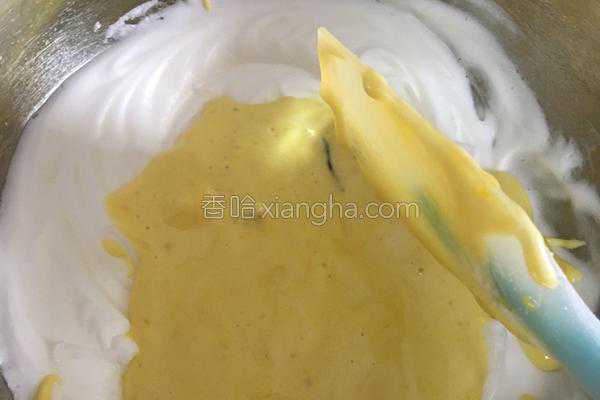 7、再将搅拌好的加进剩下的蛋清中,搅拌均匀
