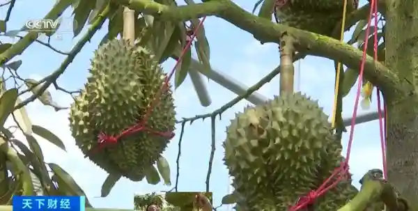 在海南省三亚市的榴莲种植基地,不少榴莲已经进入了最后的膨果期。针对榴莲生长周期长、对环境要求高的特点,海南在引进种植过程中,不断摸索试验,总结出了喷滴灌、技术矮化等一批本土培育经验。