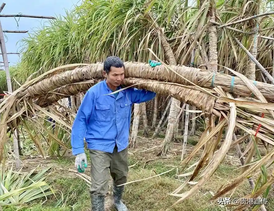 “扎束”的白玉蔗,如同包裹了一层天然的保鲜膜,在霜冻天亦能保护蔗身免受寒害,留田保鲜不退糖、不变味。包裹的蔗叶亦如同天然的“棉袄”,在冬季起到保温和保鲜作用,砍后的甘蔗在常温下放置1个月左右仍新鲜如常。