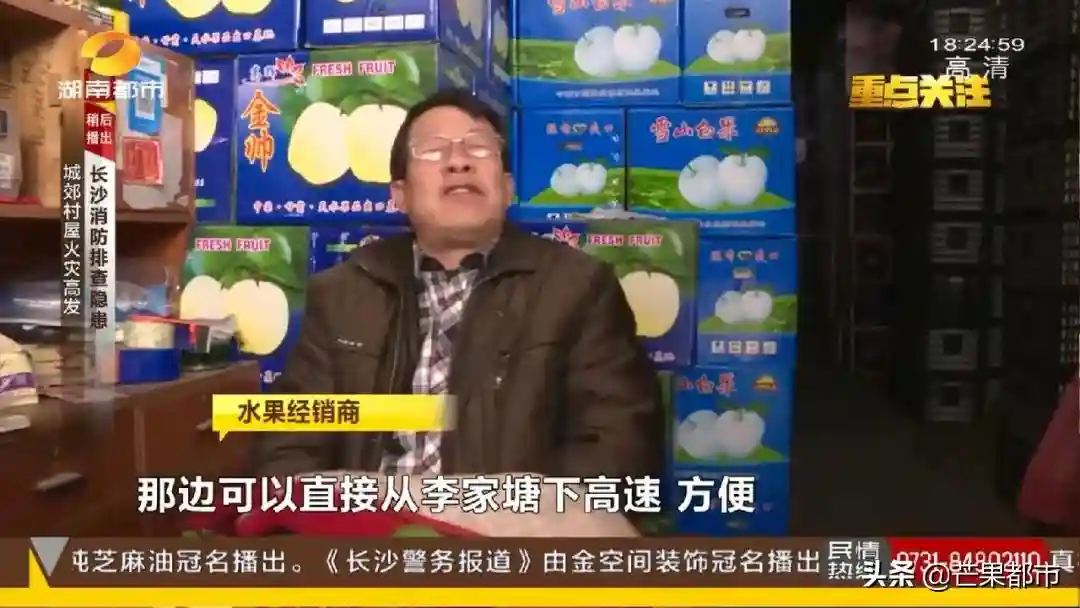 记者陈杰:我现在是在长沙湘府路,后面这条路就是湘府路进入红星水果市场的主要通道,我们看到因为停车位缺少现在道路两边都停满了车,而运水果的大货车从这里走非常不便。特别是在节假日水果销售的高峰期,还会造成湘府路的交通堵塞。