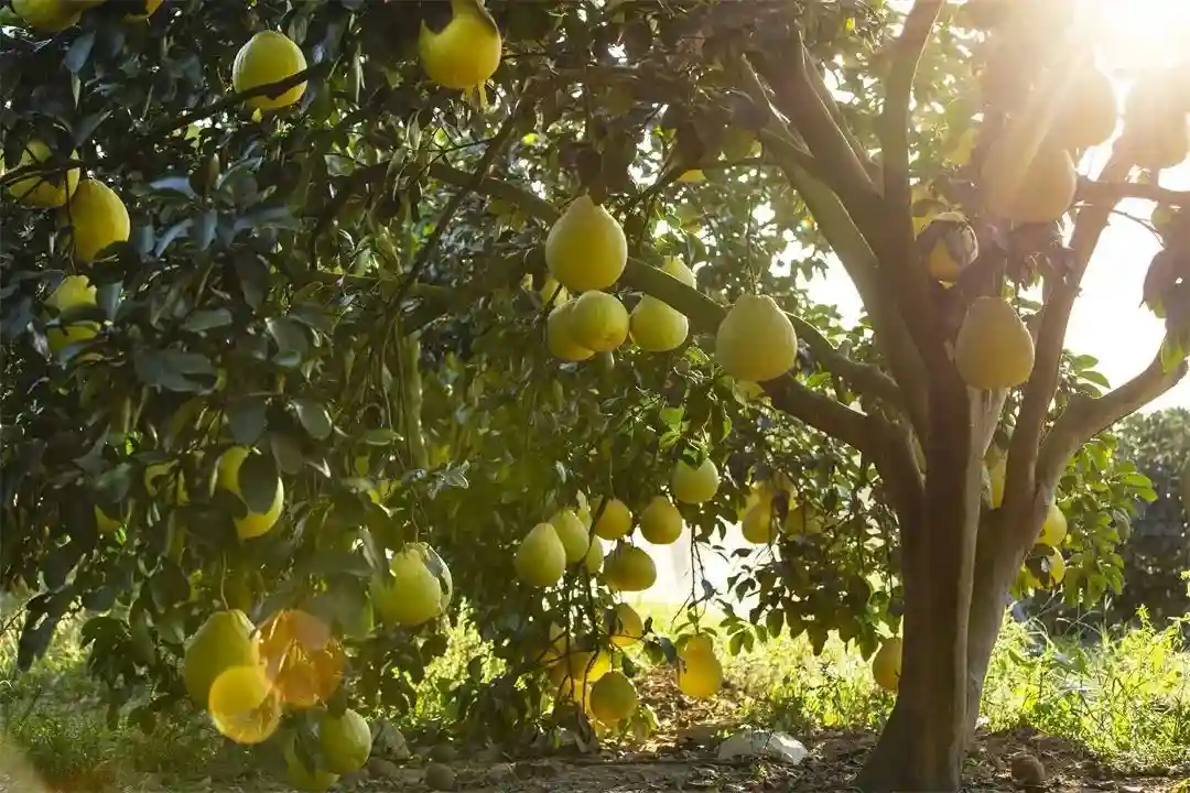 相对于金桔,沙田柚像是一个巨无霸的存在。在容县满山的果园里,一个个泛黄的柚子垂挂在树上,透过冬天的阳光,它们如同小太阳一样温暖人心。