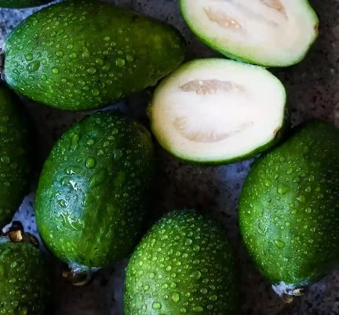 斐济果是新西兰特有的果子,这种果子每到成熟就会自己掉落下来,每到果子成熟的时候,当地的男女老少都会在地上捡,这个果子神奇之处在于每到成熟就会自然掉落,人们可以用它做奶昔做蛋糕做松饼以及各种各样的美食。