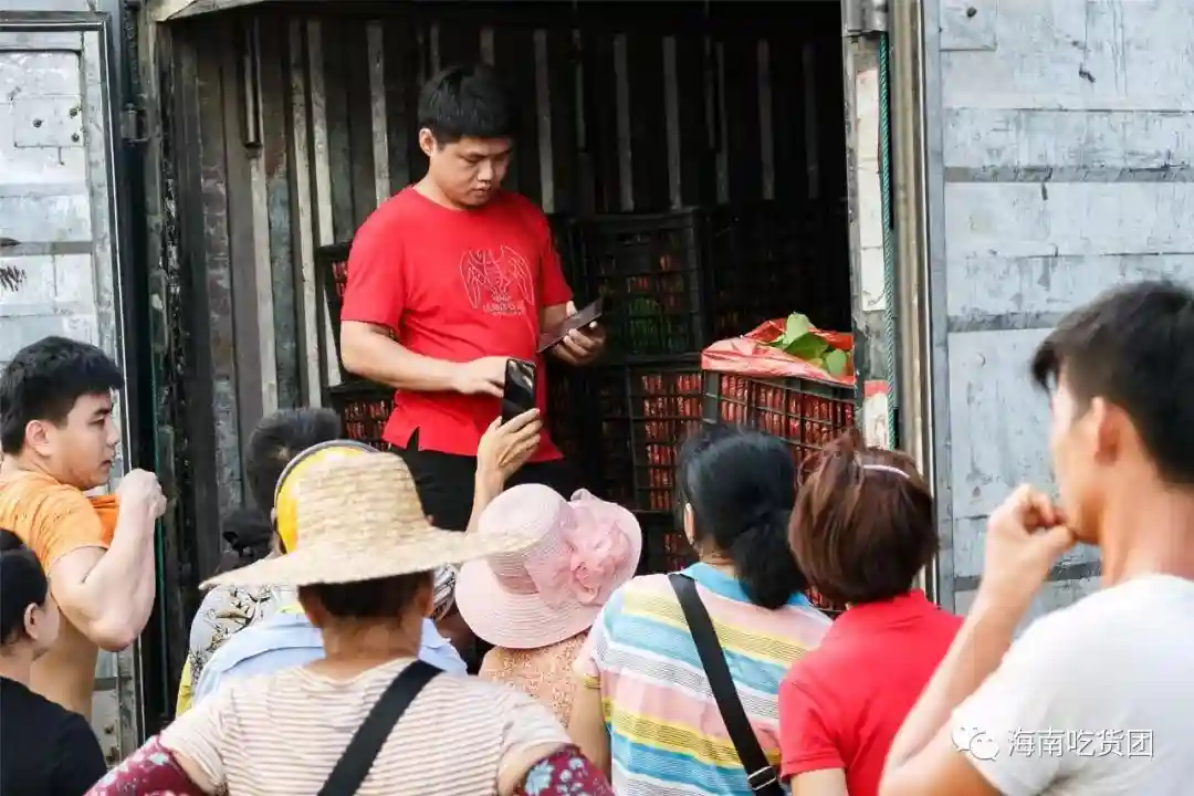 南北水果市场作为水果的批发集散地,这里的水果大多是批发给海口大大小小的水果店及摊贩。有时候可能是一车水果刚到,便会开启“抢购”模式。