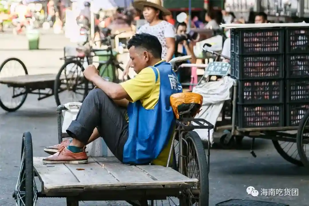 在南北水果市场里,时常能看见一些穿着蓝背心的阿爹阿vo,抑或是年轻的小伙子,骑着三轮车穿梭其中,他们,便是这里的人力车夫。
