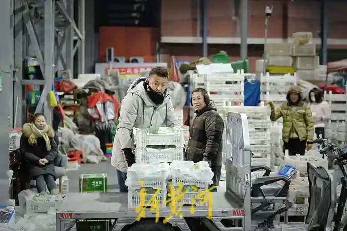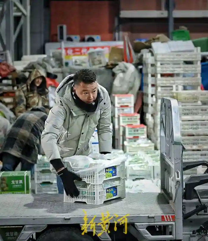 12月4日凌晨4点,寒夜未尽,身材魁梧的米广辉,穿着及膝的棉袄,围着宽厚的围巾,搬起一筐筐葡萄来很是麻利。“一两点就要开始忙了,干这行,大家赚的都是辛苦钱。现在天气还算可以,再过几天,一个棉袄可要冻傻哩。”米广辉说着,电话铃声突然响起,寥寥数语,电话那头的订单也收入囊中。在多数人还在睡梦中的时刻,他已记不清打过多少电话。辛苦与欢愉的交织,让米广辉步履不停,生活也渐渐折射出绚丽的光。