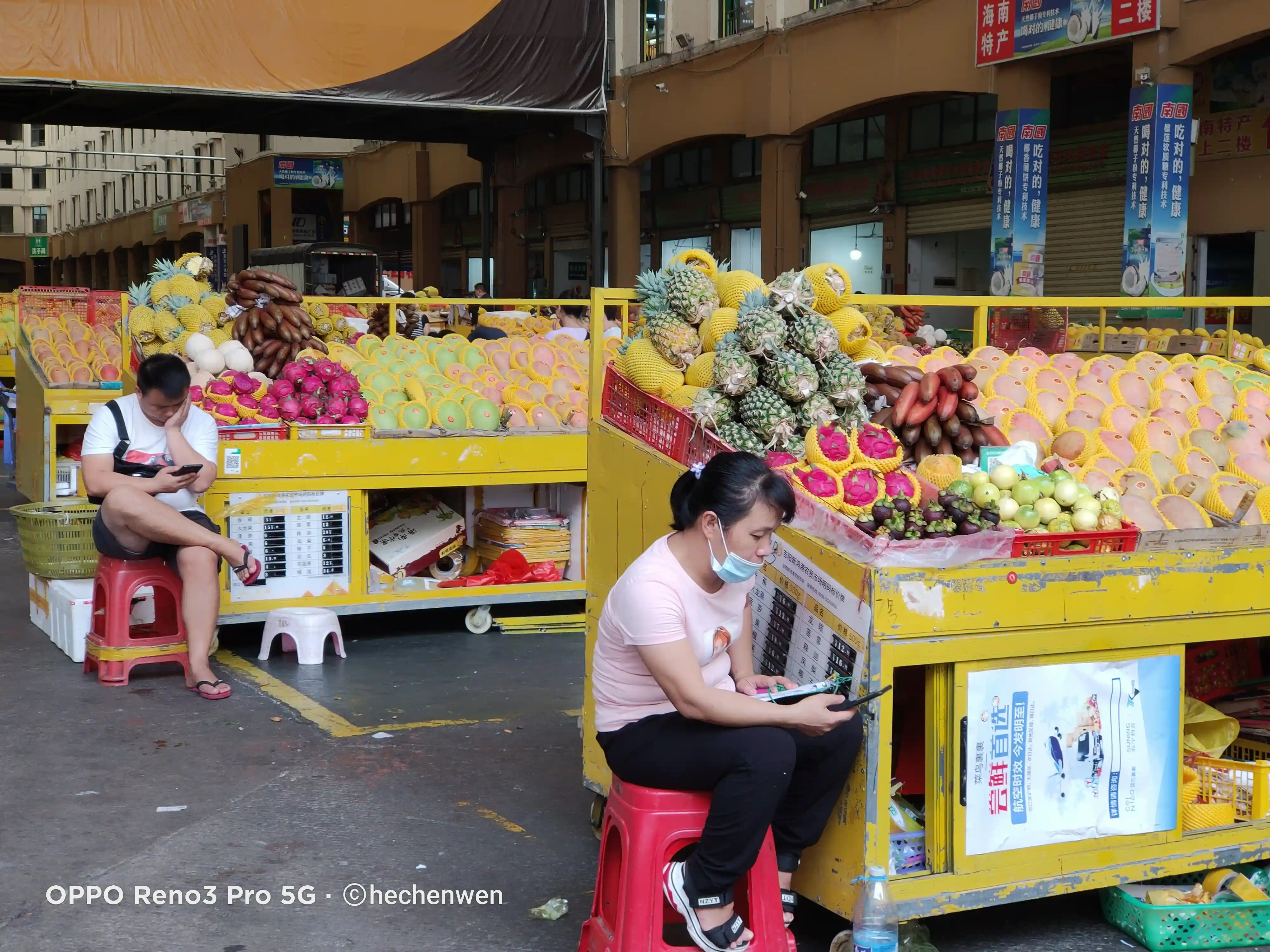 为什么说很多人都会来鸿港市场呢,因为这里除了有水果批发之外,还有海鲜批发,加工,特产的售卖,来这边可以满足你对三亚的所有期待。我们主要是来买水果的,所以第一时间来了水果市场。