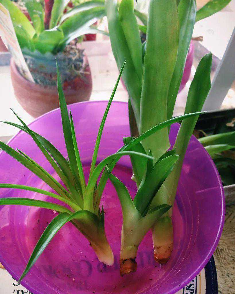 也就是说,大家从市场上买来那些已经开花的盆栽,观赏凤梨,包括常见的红星凤梨、莺歌凤梨或积水凤梨等,都不用换到太大的花盆中,那样反而容易导致积水烂根。