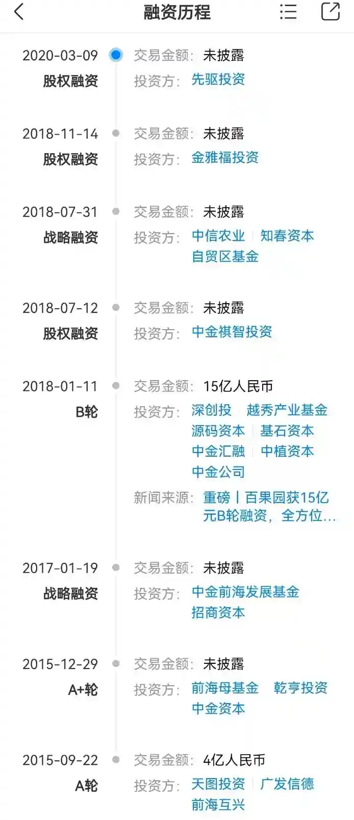 天眼查显示,在此次递交上市材料之前,百果园已经进行了8轮融资。
