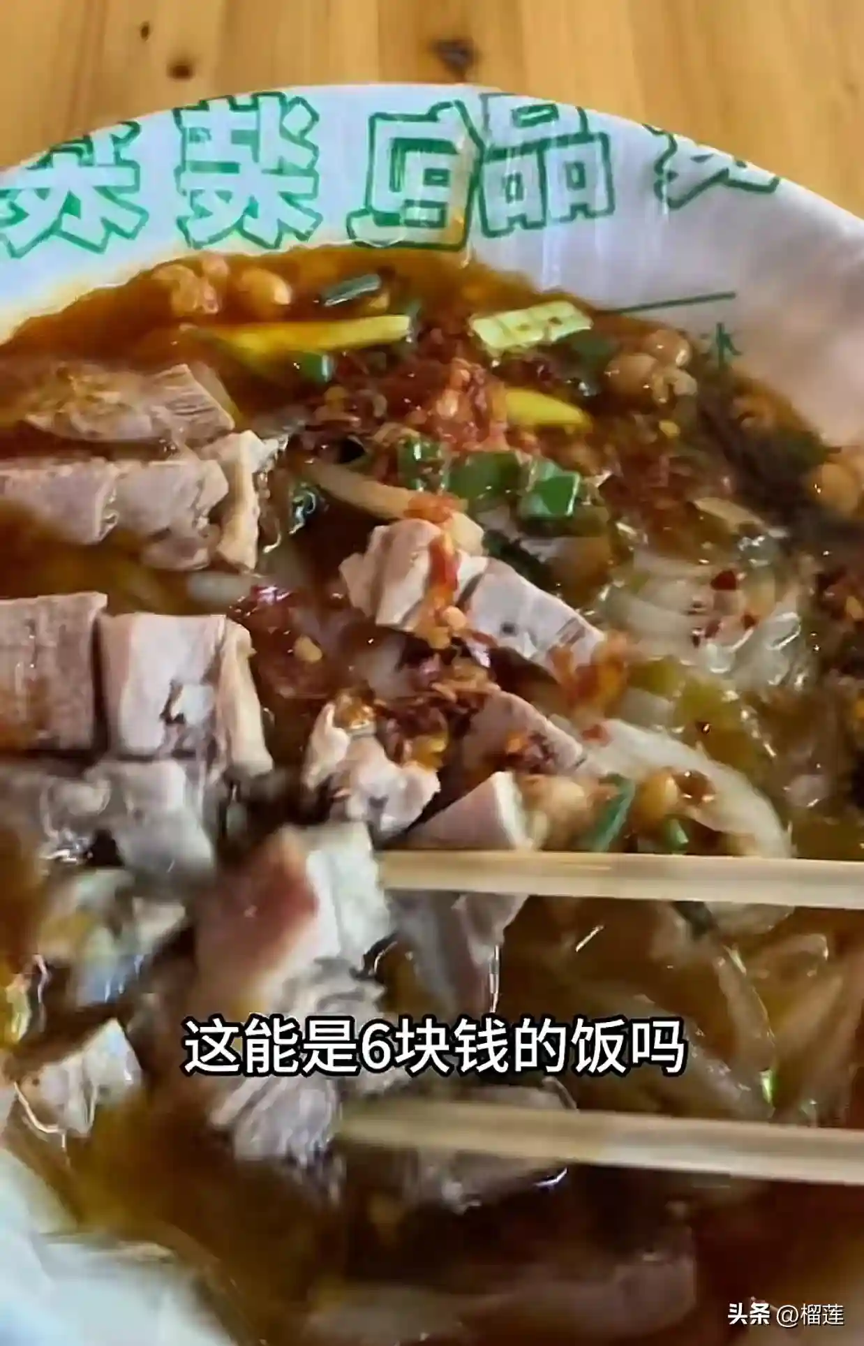 哎,过分了吧。老板,6块钱的饭你放这么多肉干嘛?(不多啊)不多啊(不多啊,这里是6块的多了吗?我早知道我放少一点呢,我都能多做一碗,打PK把价格格压低了。以前是10块钱一晚啊,就是那些人过来打PK把价格压低了)他们打PK怎么把你家给你压低了呢?(那没办法啊,一家6元全部都跟着要卖6元)