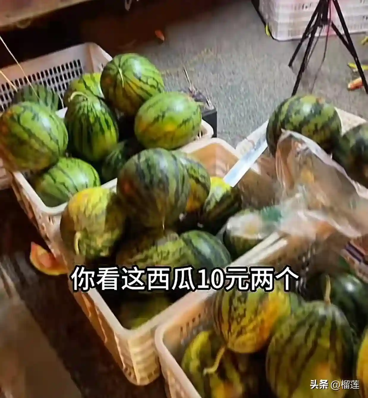 所以他们给我挑到最好的榴莲,我说别人也有棍子,他说那个跟我这不一样,于是我就在他那儿买了个猫山王,一整个圆滚滚的,才100出头,然后我就心里开心啊,我就想到我买到整个广西最便宜的水果了,万万没想到,就晚上路边他们会摆那个小推车,我远远就听到什么什么东西,1元两个,我赶紧跑过去看,10元两个,我一看这是西瓜,10元两个。
