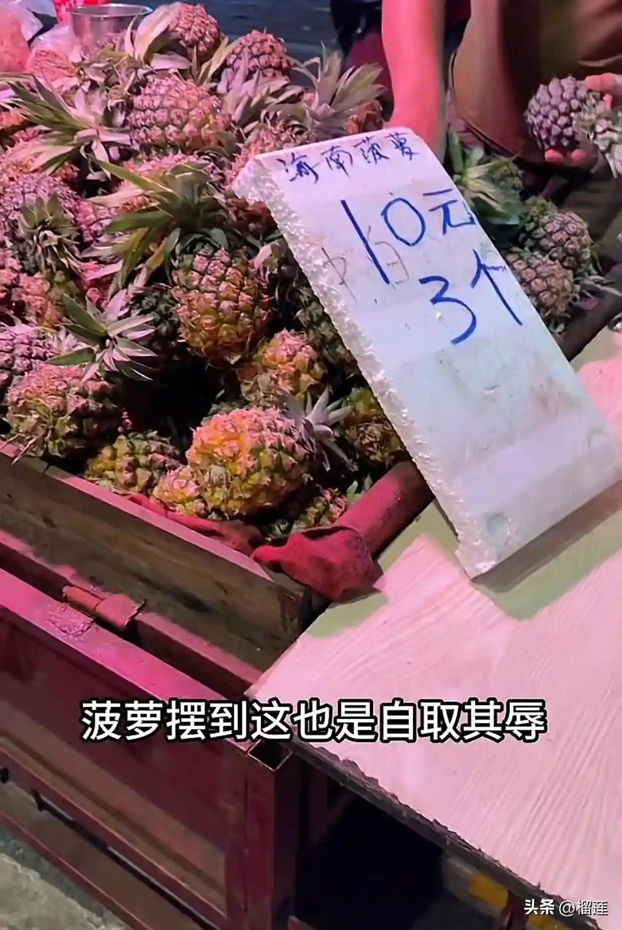 杨梅又6块8了,好好好,菠萝摆到这儿也是自取其辱,10块钱三个,还给削好,哈密瓜也10块两个,菠萝蜜也10块两盒,是不是有人逼你们这样定价?人参果也是10块钱三斤,我感觉到了广西的水果那就是投错胎了,在这活的是一点儿经严都没有吗?