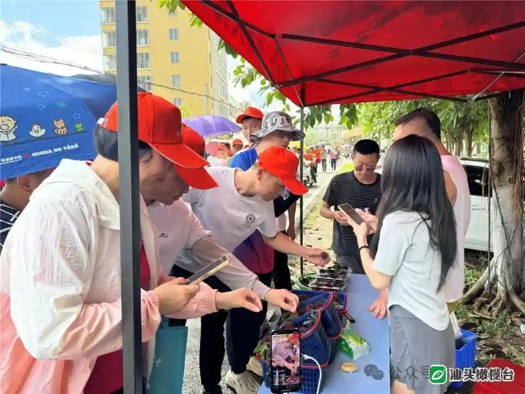 潮阳区金灶镇是“一村一品、一镇一业”专业镇。当地积极推动农文旅融合发展,连片打造金灶乡村振兴示范带,一幅“河畅、水清、岸绿、景美”的秀美画卷逐渐呈现。当地一年四季瓜果飘香,目前正是杨梅成熟时节,金灶镇绿色水果协会在徒步线路中设置了农产品展示区,摆放青蒂、硬丝、大红、浙江红等多个品种的杨梅供市民游客品尝。