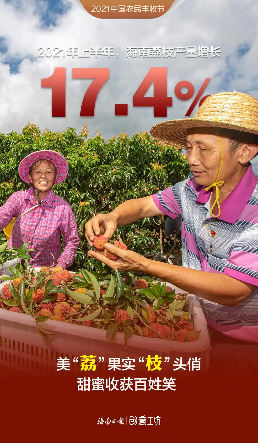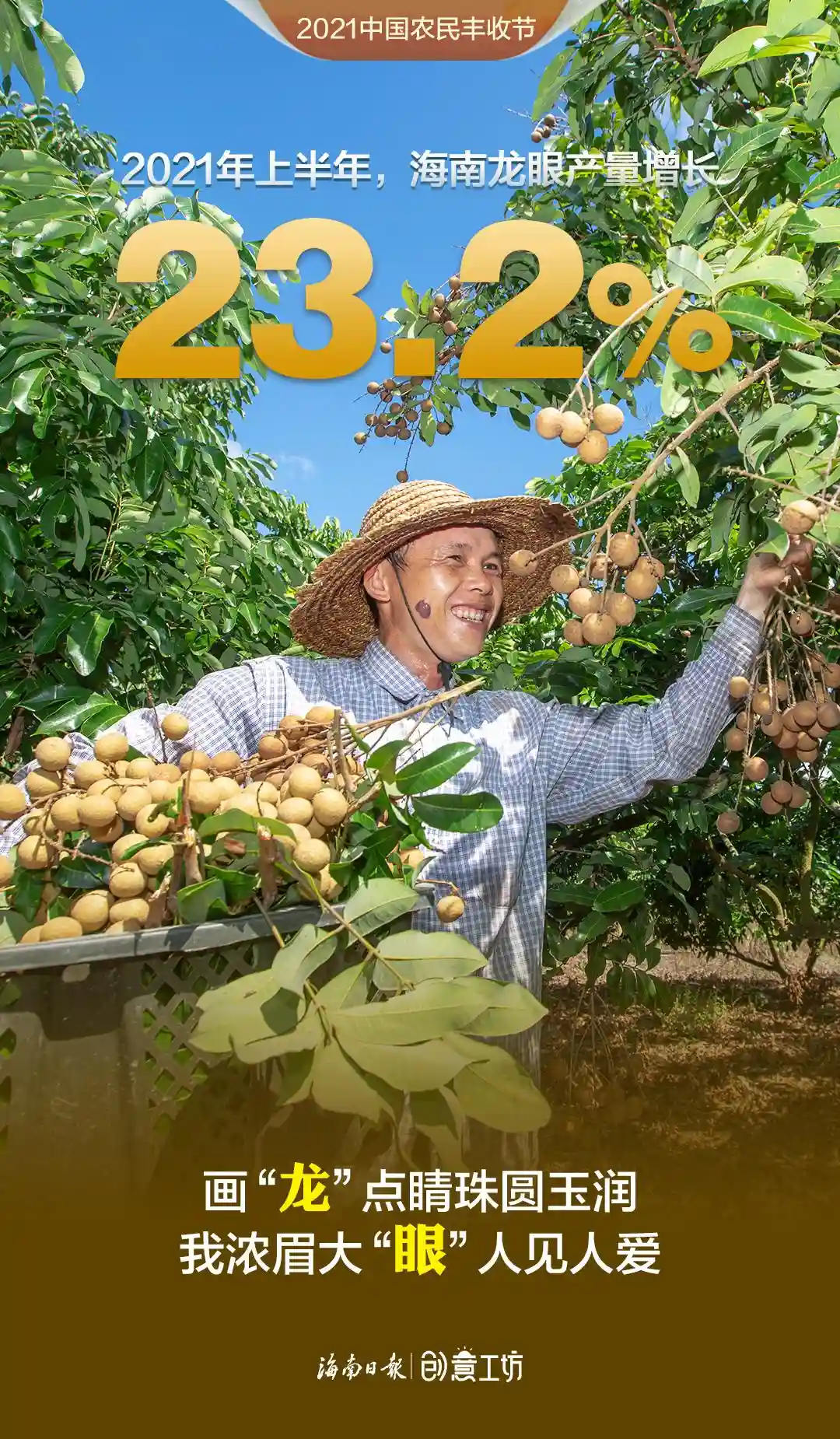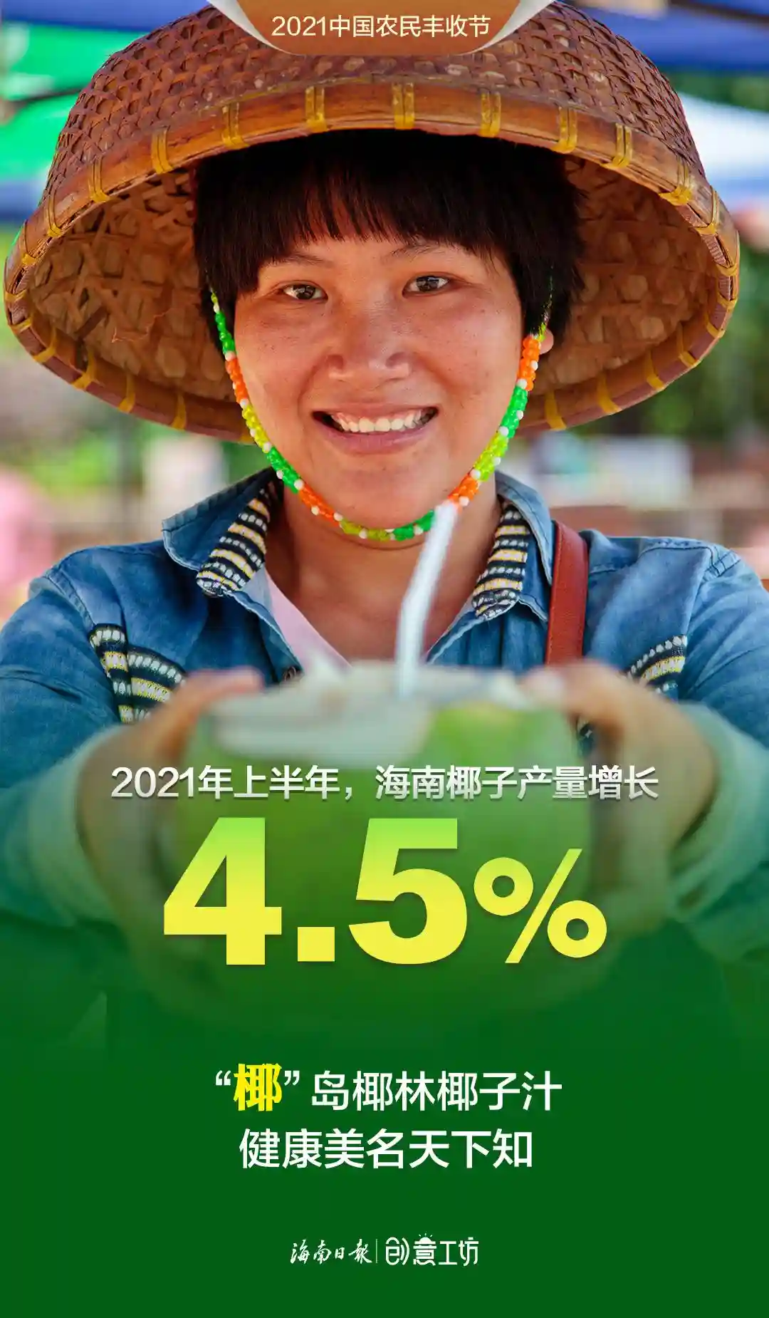 2021年上半年,海南蔬菜、水果再获丰收,蔬菜产量419.55万吨,水果总产量386.22万吨,相比2020年上半年分别增长4.8%、6.9%,哈密瓜、火龙果、莲雾、百香果等优势水果步入收获期,有力助推种植业增长。在第四个中国农民丰收节来临之际,伴随着海南田间地头丰收的喜悦,新媒体中心制作了一组令人“垂涎”的创意海报《水果话丰收》,这些有颜有料的水果个个自信满满、魅力无限,快看看“她们”有什么话要对你说!