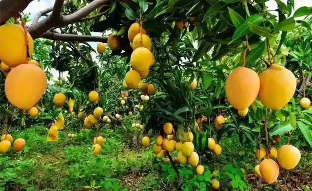 芒果,漆树科杧果属植物常绿大乔木植物,原产于印度及马来西亚,中国广东、广西、云南、福建等地有栽培,多生长于山坡,河谷或旷野的林中,有“热带果王”之美称,已有4000多年的栽培历史。中国芒果种植面积417万亩,产量396万吨。