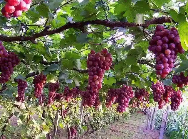 葡萄,葡萄科葡萄属高大缠绕藤本,原产于西亚地区,在西汉时引入中国,现在中国河北、河南、山西等各省均有分布,被誉为世界四大水果之首。中国葡萄种植面积1088万亩,产量达1420万吨。