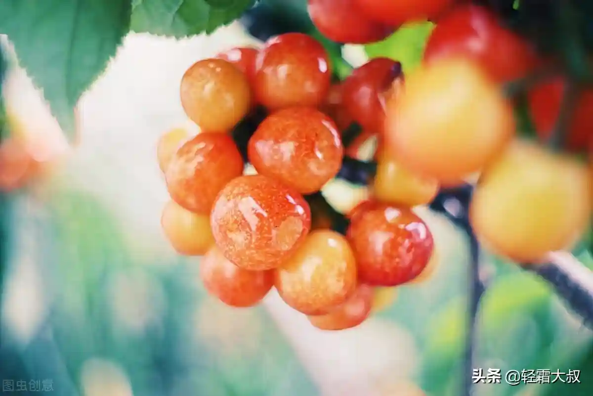 熟透了的樱桃红得正艳,只要轻轻一触便从树上脱落,摘下一颗放入嘴中,小小的樱桃肉经不住唇齿的挤压,稍微一碰汁水瞬间迸裂,溢满你的口腔,芳香诱人的汁肉触碰你的味蕾,在你的舌尖上满满散开。