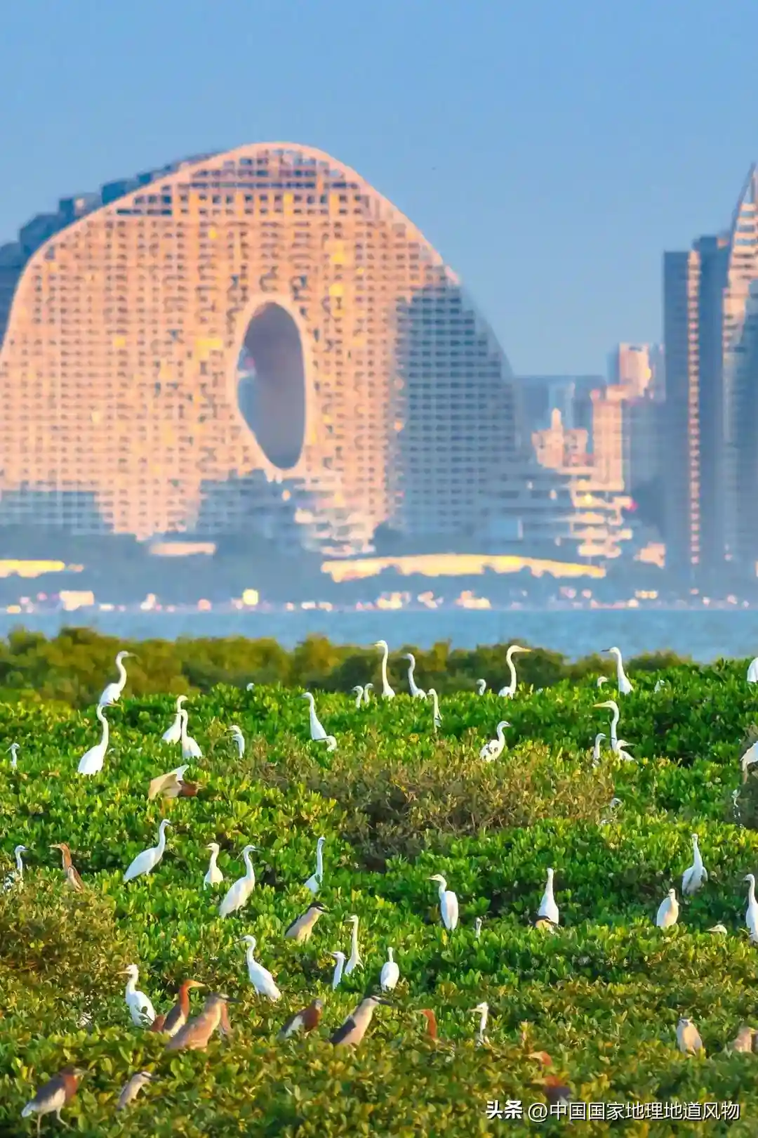 其次,热带气候与自然地貌共生,让广西之海生机勃发。广西陆地海岸线的许多地方,都铺有一条远望便足以养神的“海上绿毯”,这正是被誉为“海上森林”的红树林生态系统。而北部湾中部那座中国最年轻的火山岛涠洲岛,不但以火山熔岩地貌著称,其环岛的珊瑚礁岸线,同样是南海重要的生态珍宝。