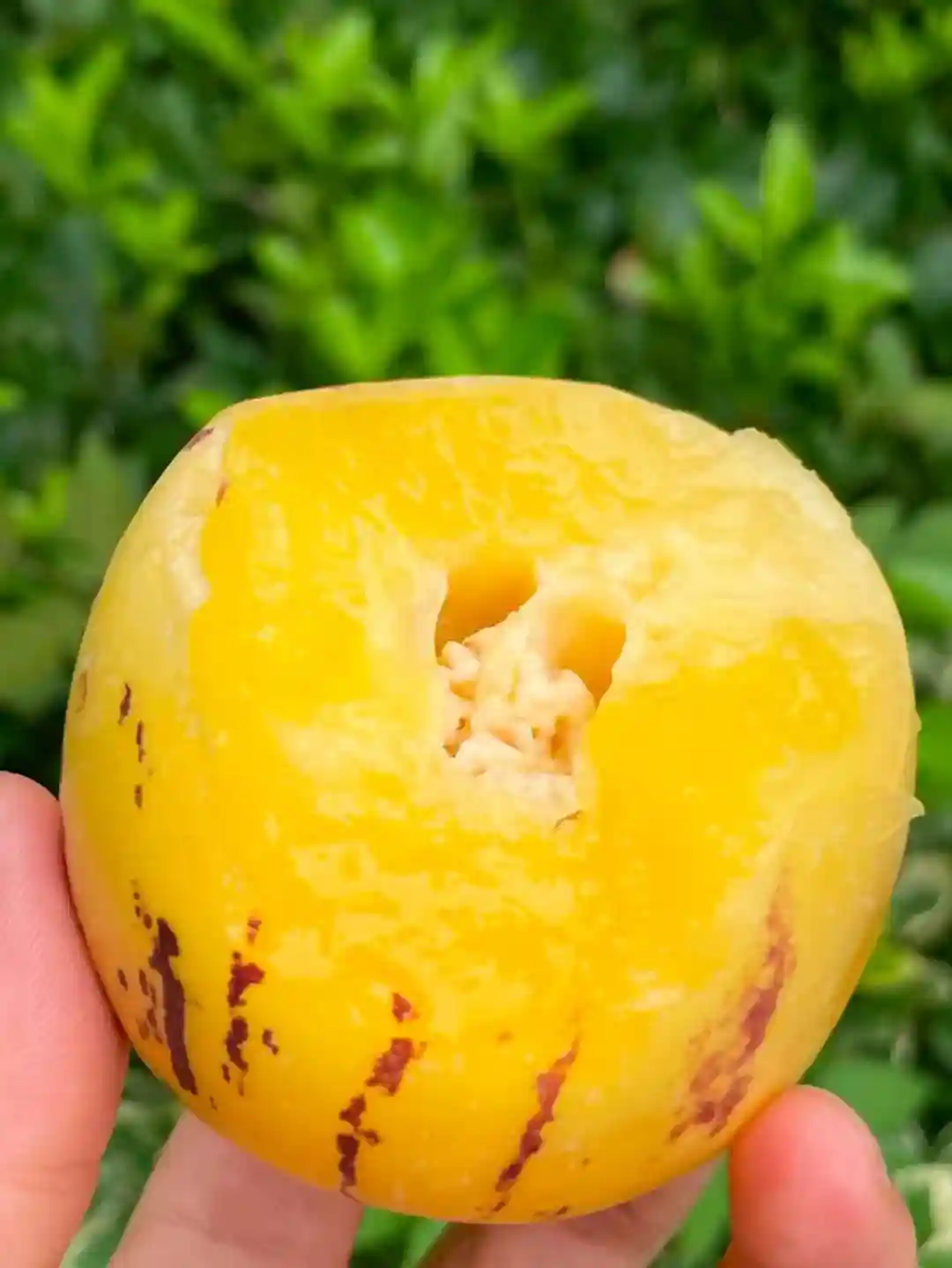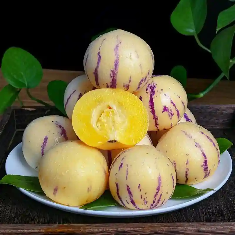 人参果在果摊上很容易买到,成熟时是金黄色,呈椭圆形,而且带有紫色条纹,闻起来有淡雅的清香,吃起来无核多汁,味道很独特,很多人吃不惯,吃了一次就再不吃了。