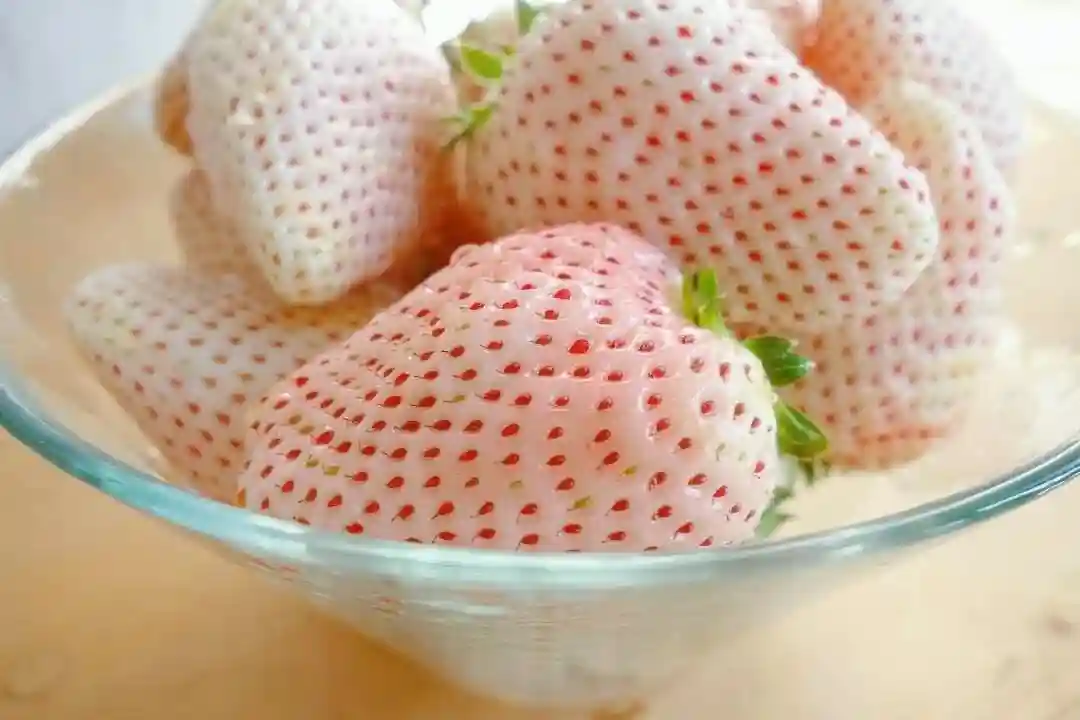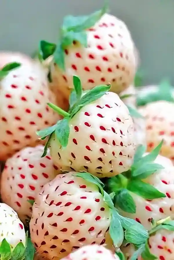 菠萝莓又叫白草莓,是生长在智利和弗吉尼亚州的两种草莓杂交而成,果肉是奶白色的,表面均匀分布着小红籽,红白相间,看着很娇嫩。