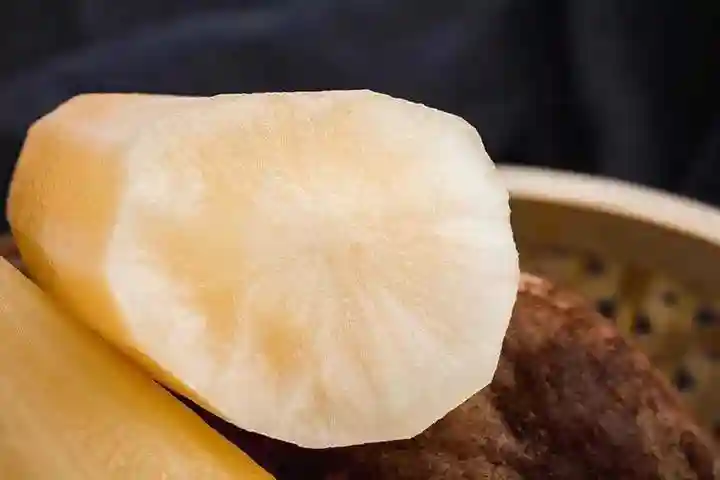 第一次看到时,多半以为是红薯,嚼起来却有点像凉薯,虽然没有凉薯的甜度,但肉质比凉薯要清脆爽口。总体来说,它的味道配不上这个名字,吃的时候味道比较寡淡,爱吃的人会说它很美味,讨厌它的人会嫌弃它的土味重,说它名字好听但不好吃。