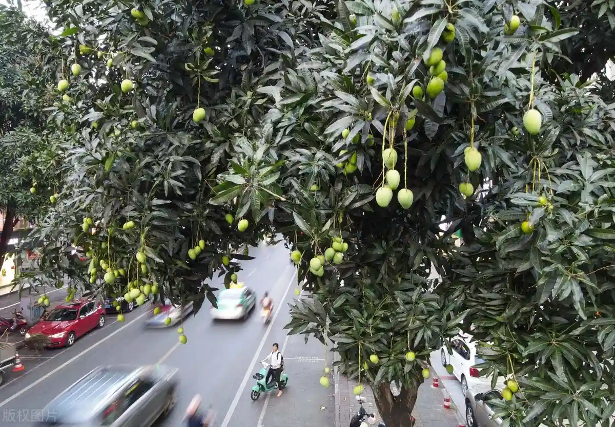 广西壮族自治区南宁市,随着夏季的到来,一些道路两侧的芒果树、木菠萝树枝头已经是果实累累。被誉为绿城的广西南宁,终年花开不败、绿树成荫,特别是在夏季,大街小巷随处可见景观树硕果累累,它们有芒果、木菠萝等,不仅成为当地一道独特的风景线,也让路过的吃货们忍不住多看几眼。