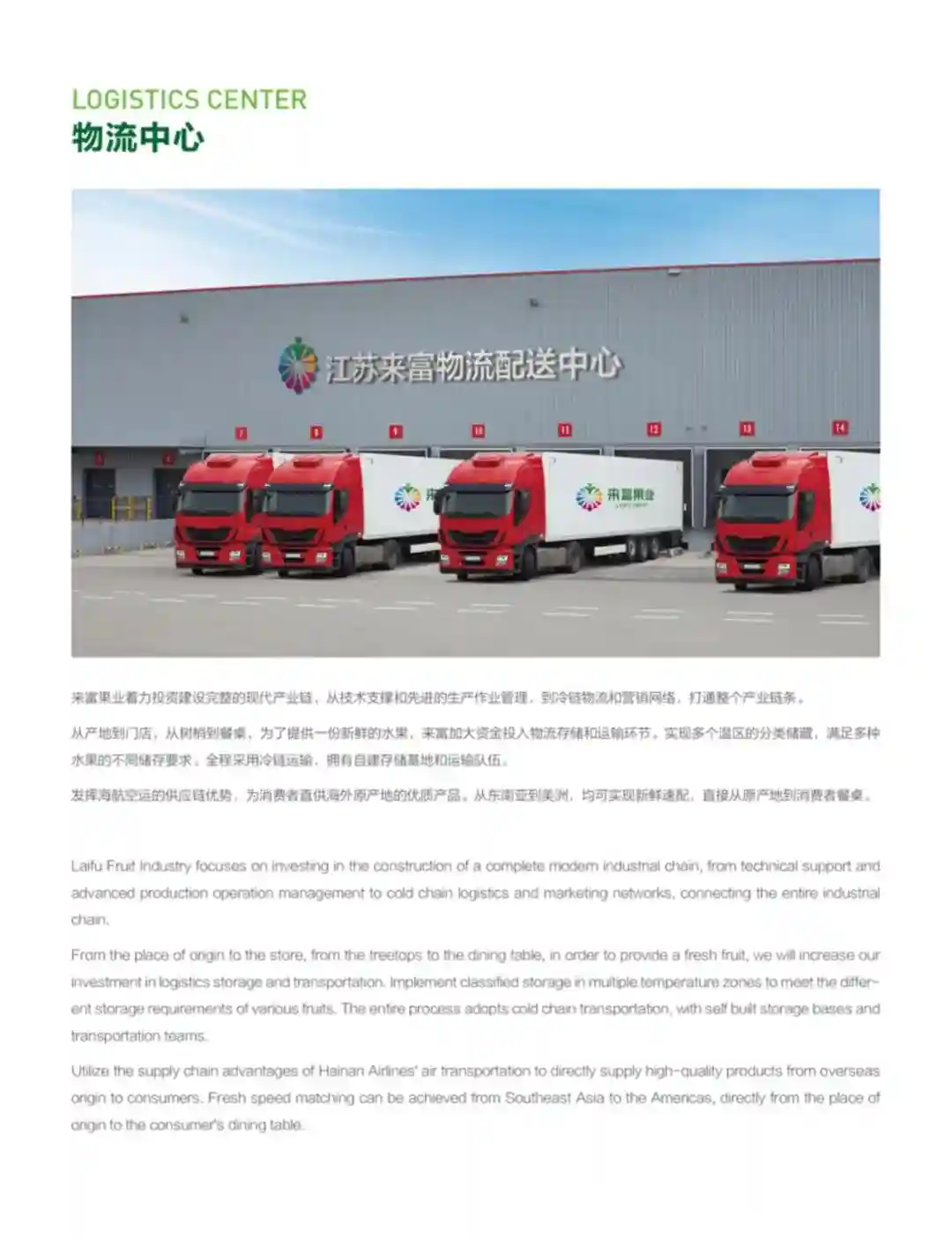 江苏来富农业科技有限公司始创于2003年,是一家集水果种植、采购、加工、仓储、物流、批发、零售、国际贸易于一体的现代化农业科技公司。