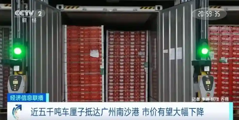 在广州南沙口岸,4800多吨来自智利的车厘子陆续卸船。经海关查验放行后,将迅速运往广州、北京、上海等多地市场。有生鲜供应商表示,从智利港口出发直航南沙仅需21天,比普通航线航程缩短一半以上。