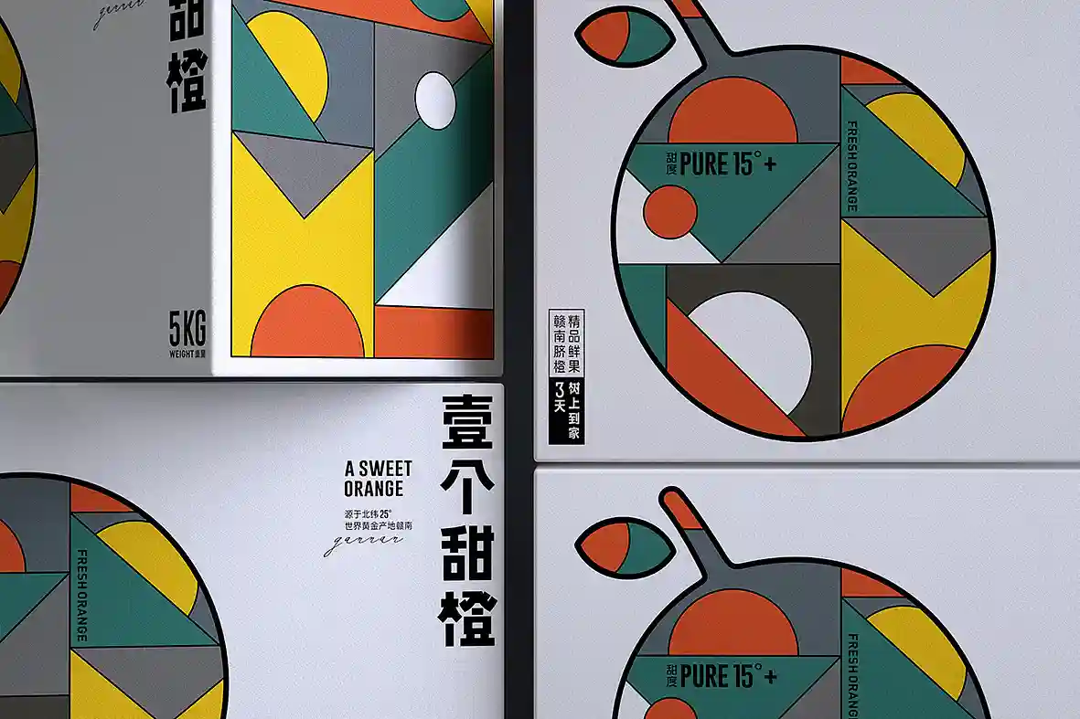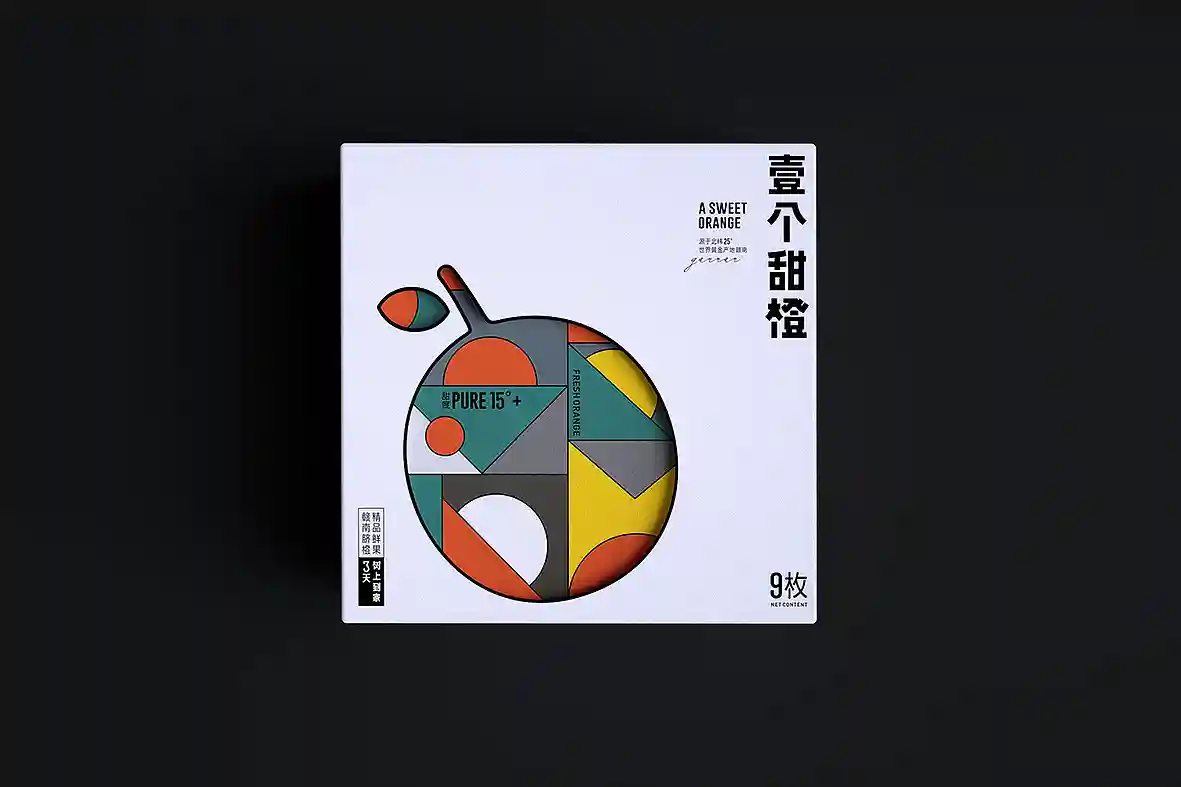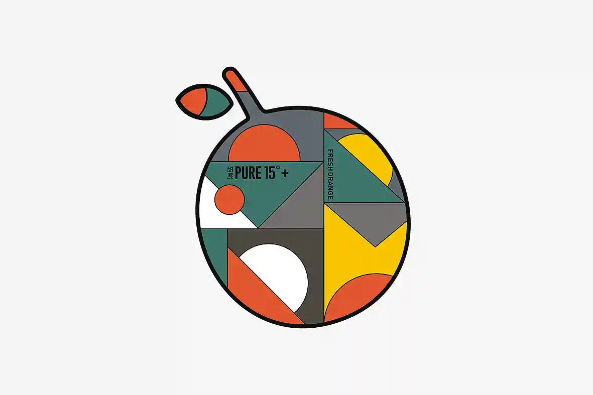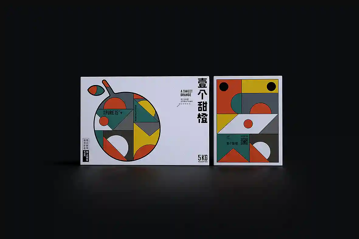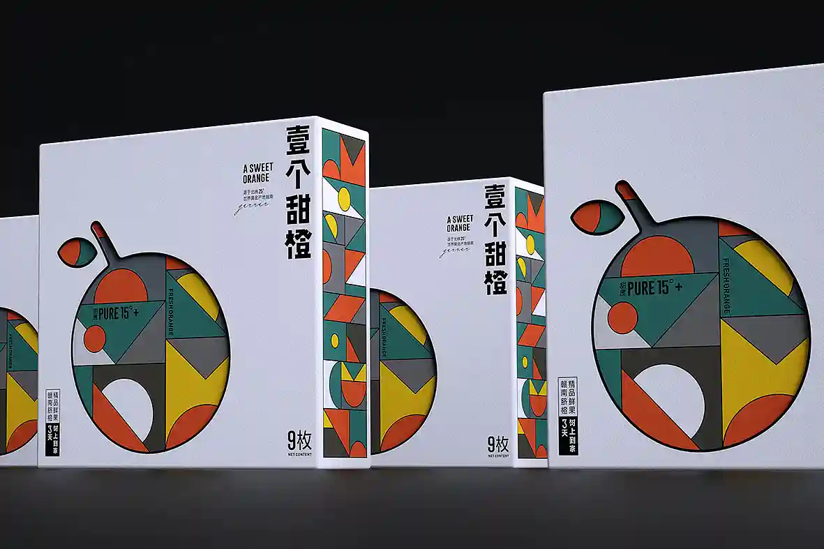 呼应名称以“壹个甜橙”创意主视觉图形,由几何图形组合而成,时尚新颖,相比于一般传统水果品牌更有识别性和差异感。