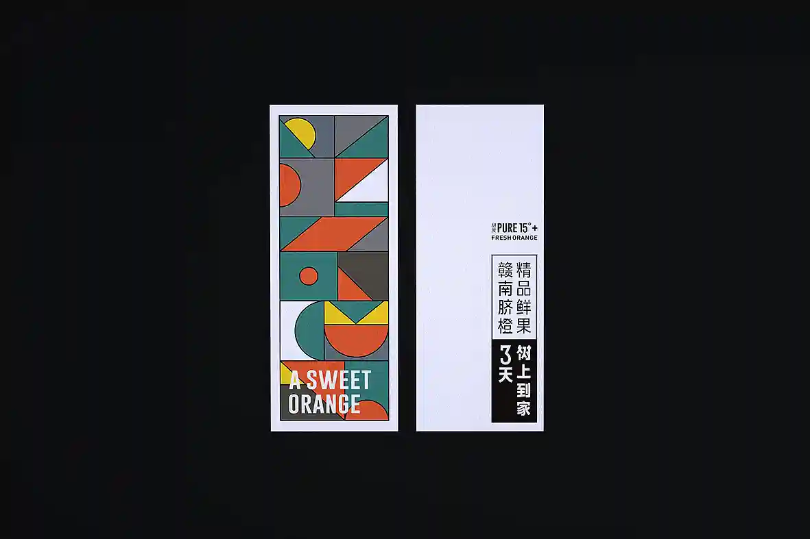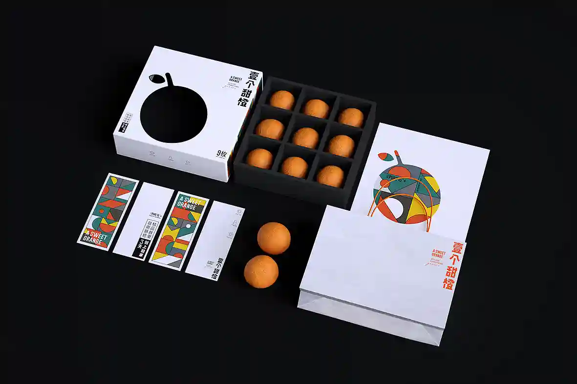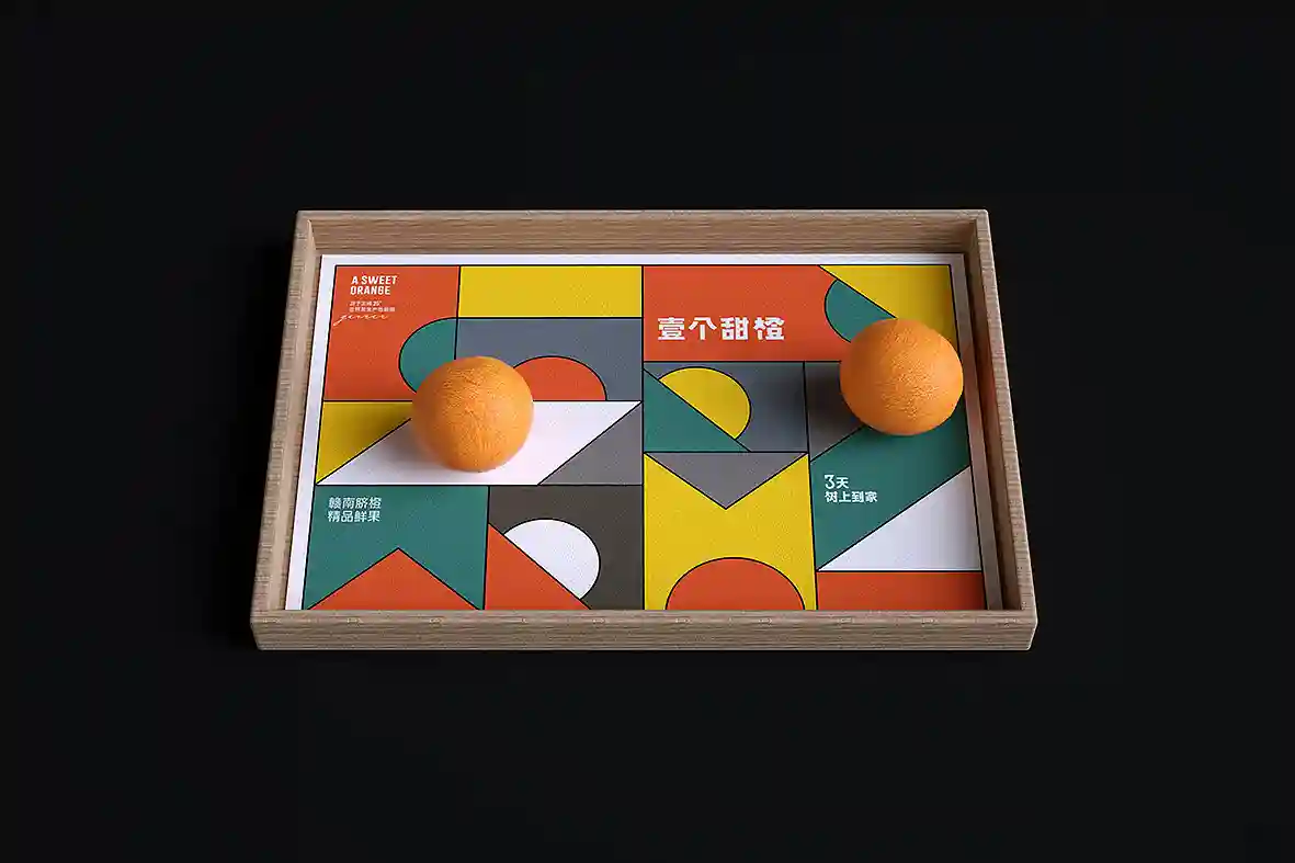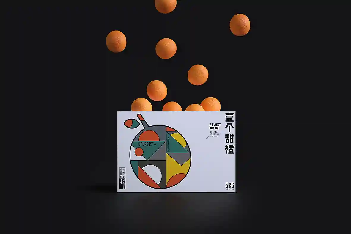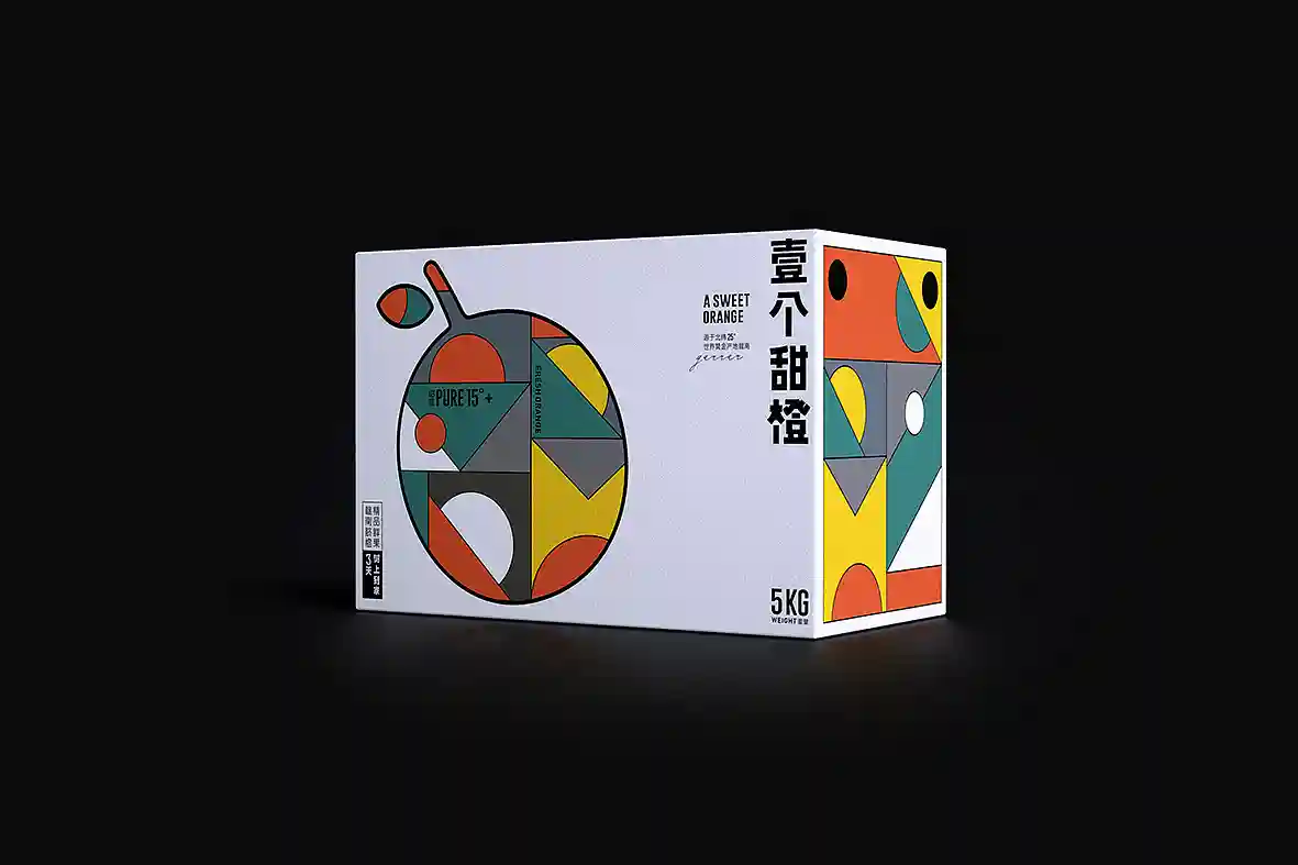 呼应名称以“壹个甜橙”创意主视觉图形,由几何图形组合而成,时尚新颖,相比于一般传统水果品牌更有识别性和差异感。