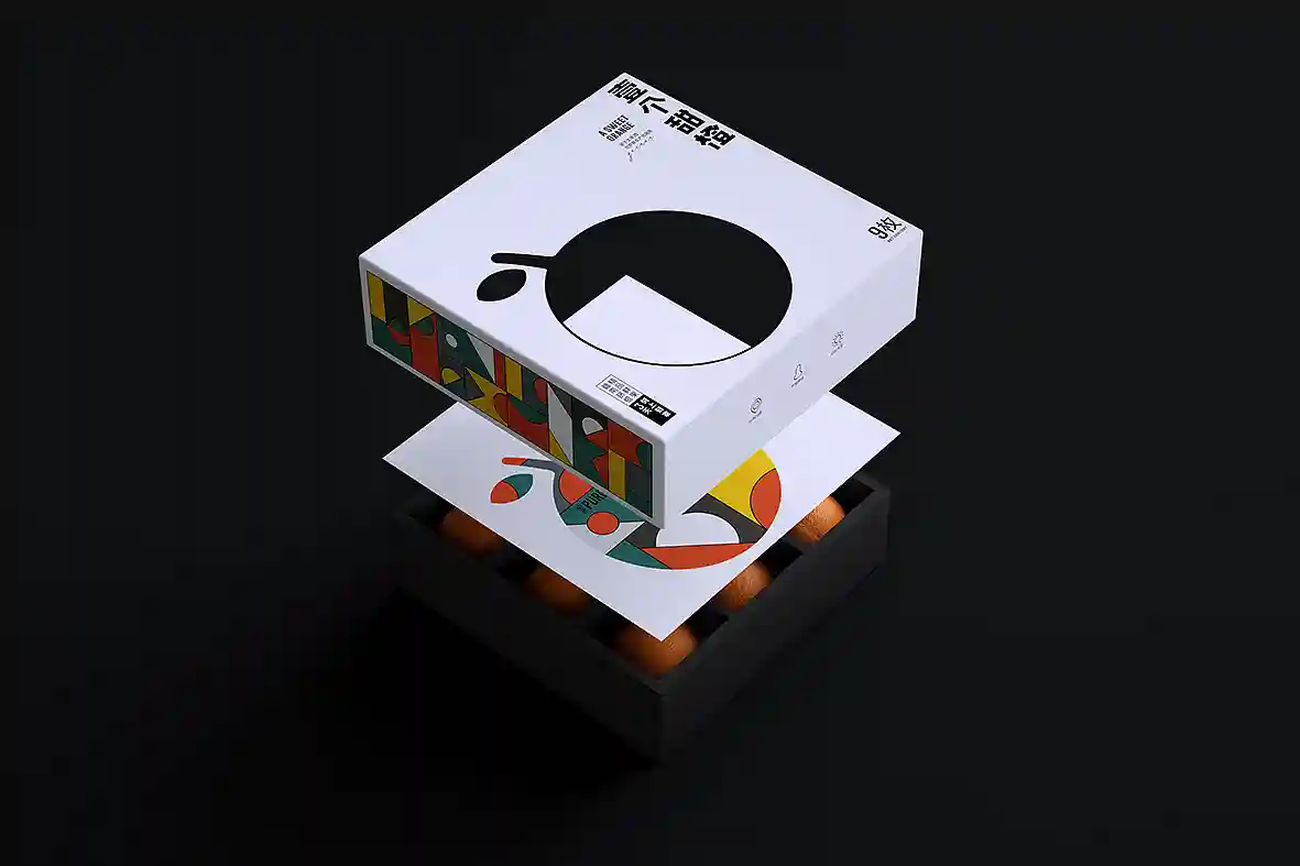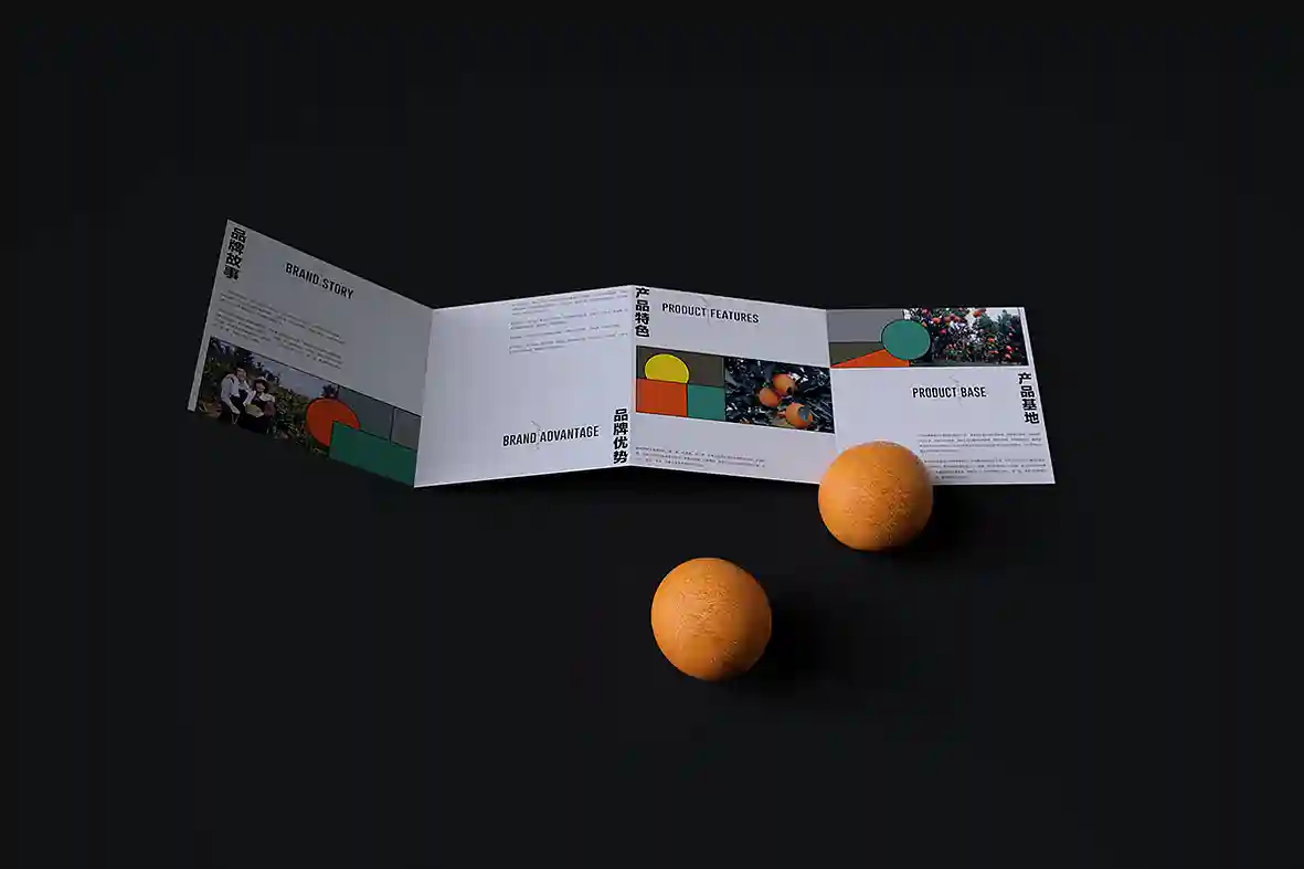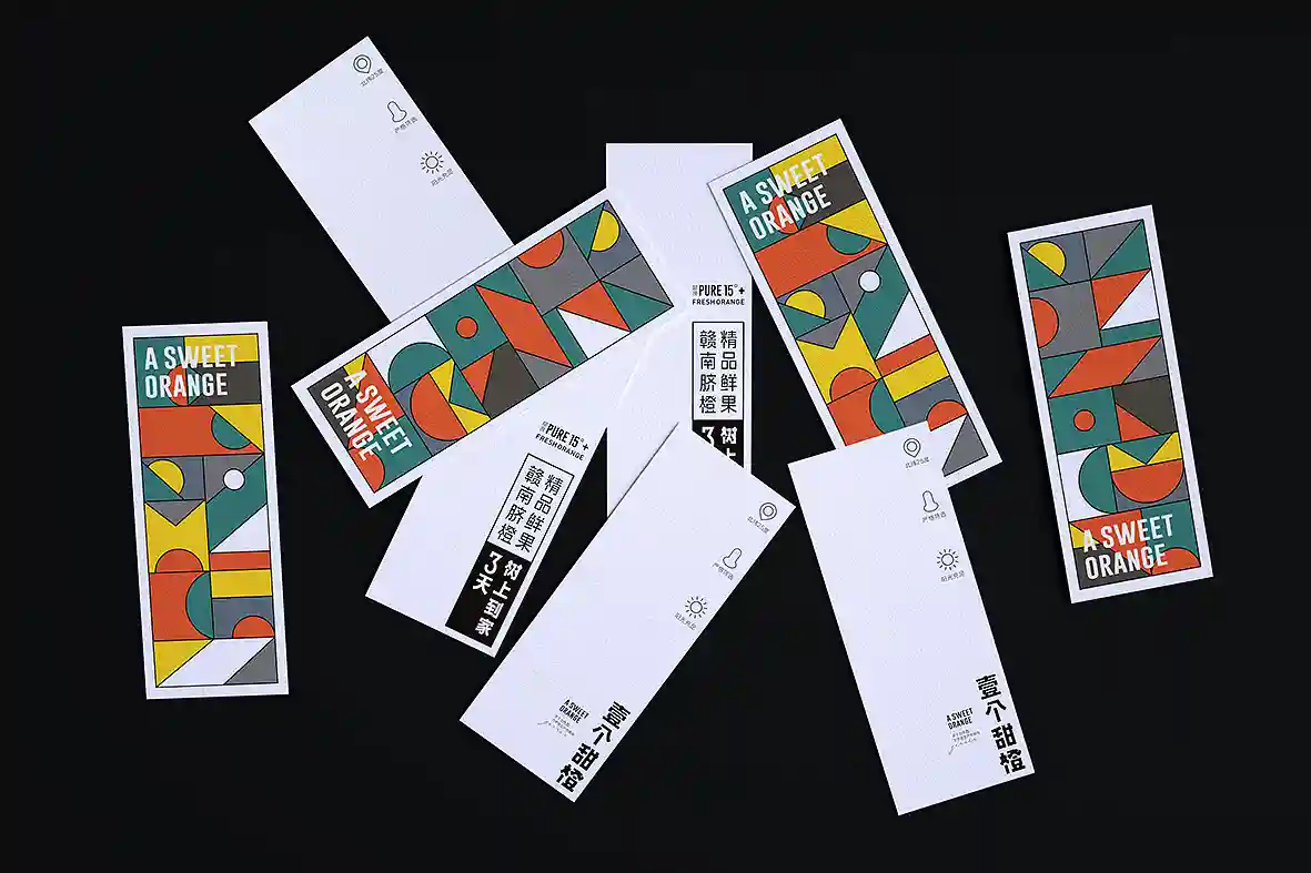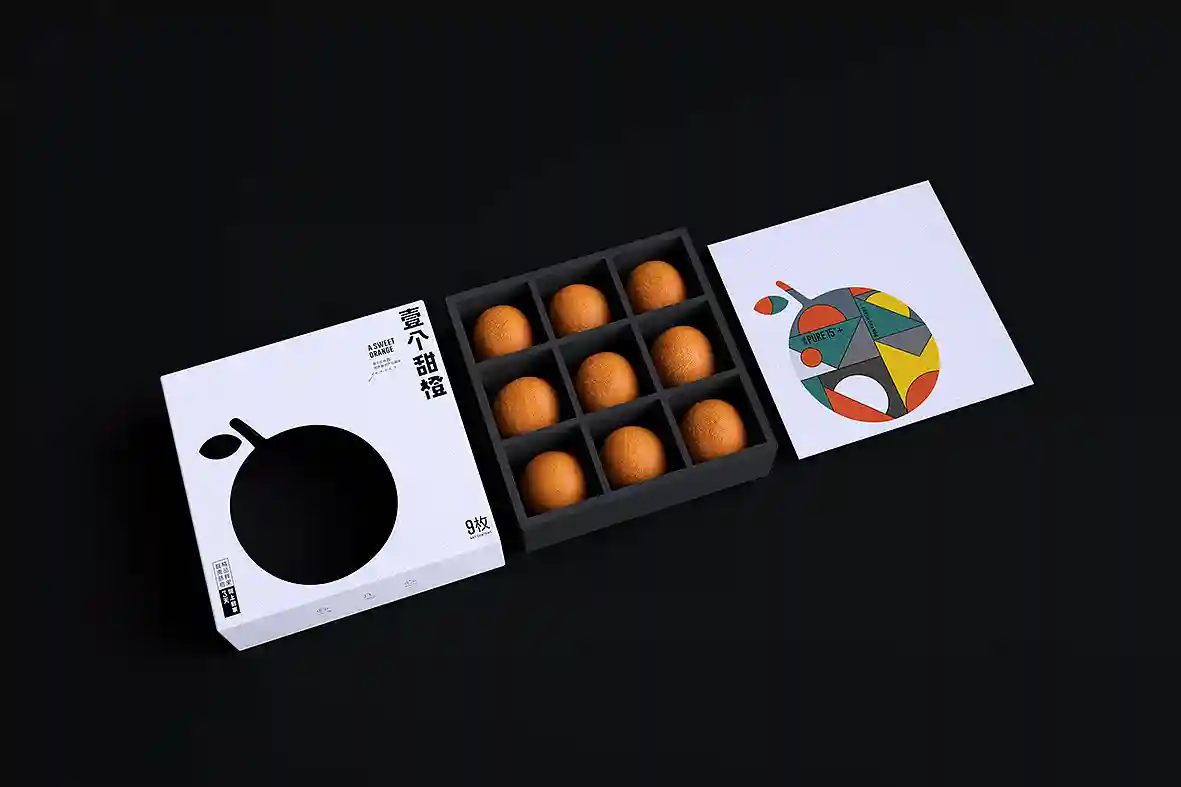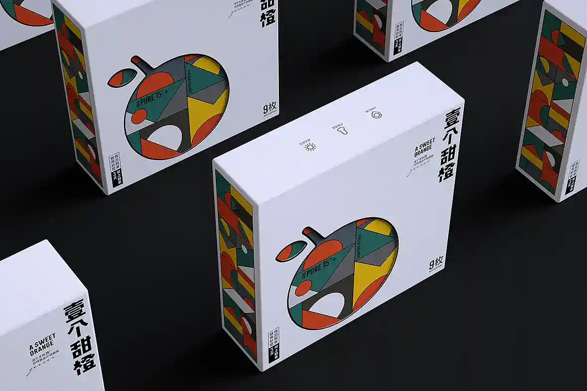 呼应名称以“壹个甜橙”创意主视觉图形,由几何图形组合而成,时尚新颖,相比于一般传统水果品牌更有识别性和差异感。