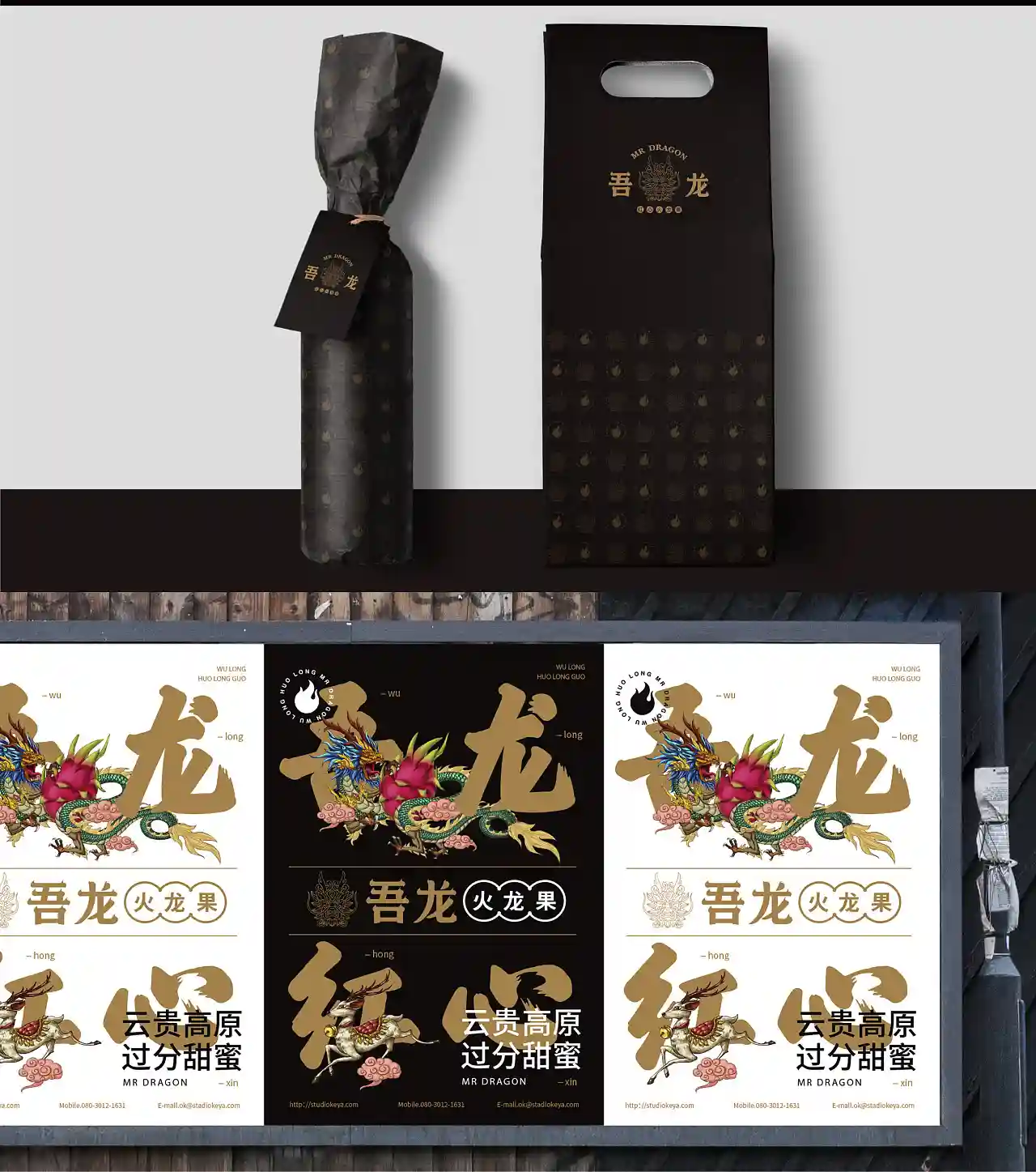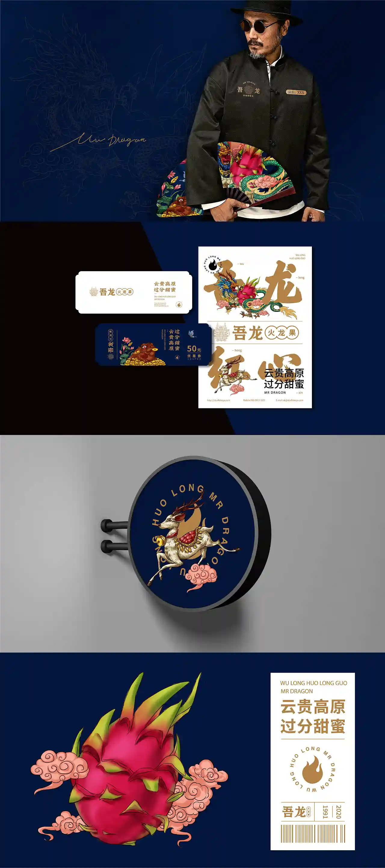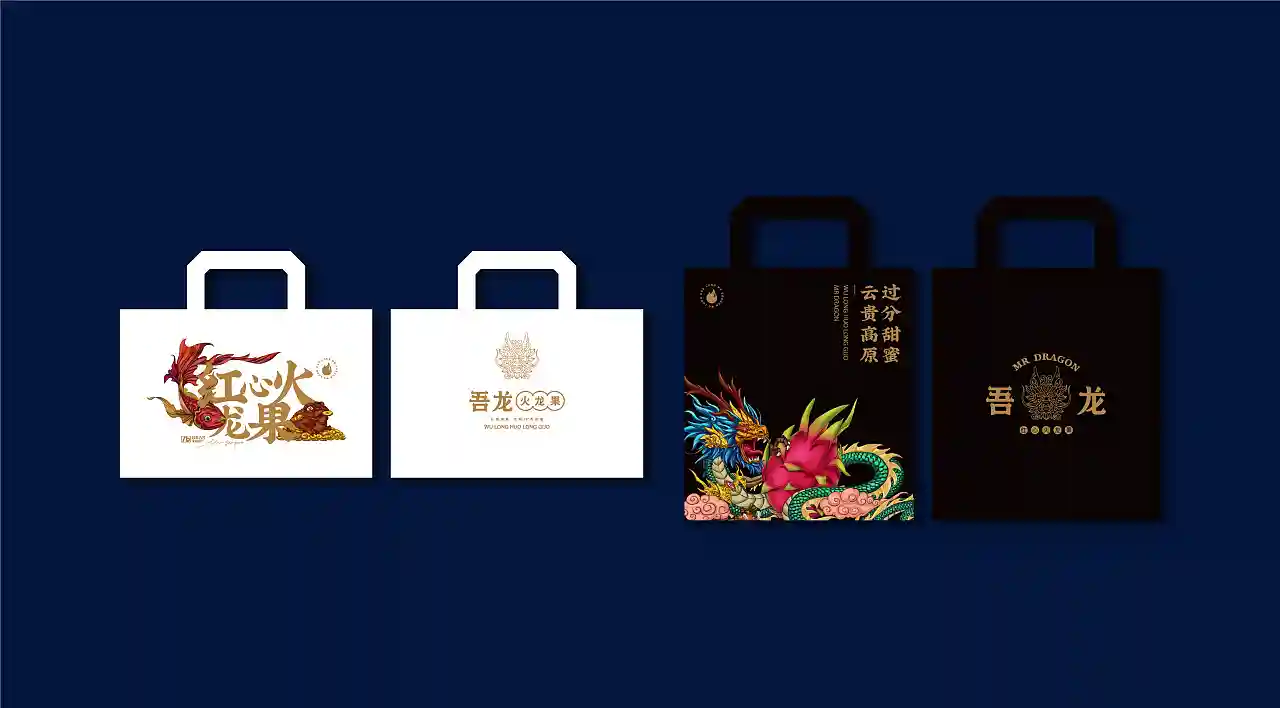 这是一个叫“吾龙”的火龙果品牌,“龙”代表火龙果,同时关联“中国龙”文化,符合现代流行的国潮风格。