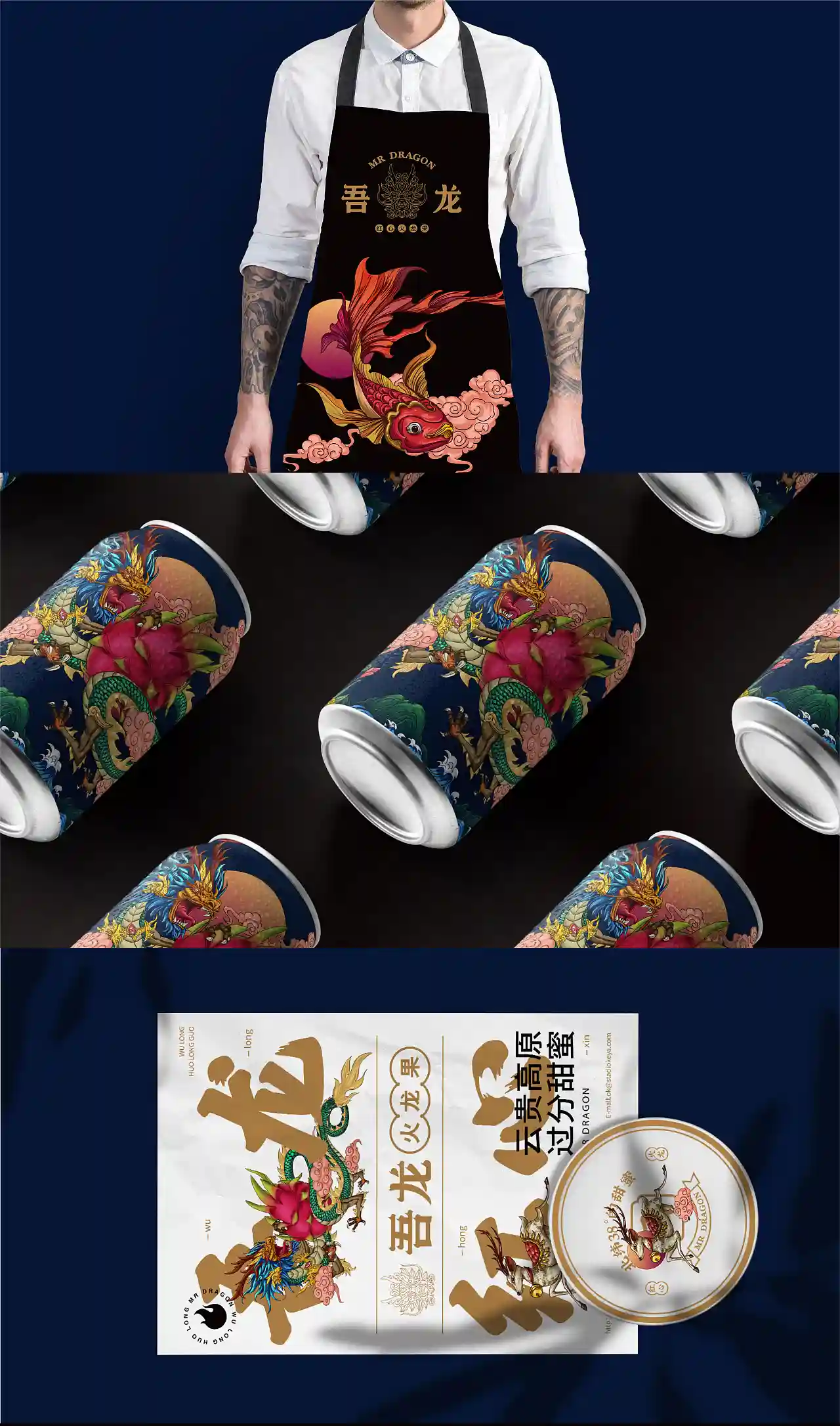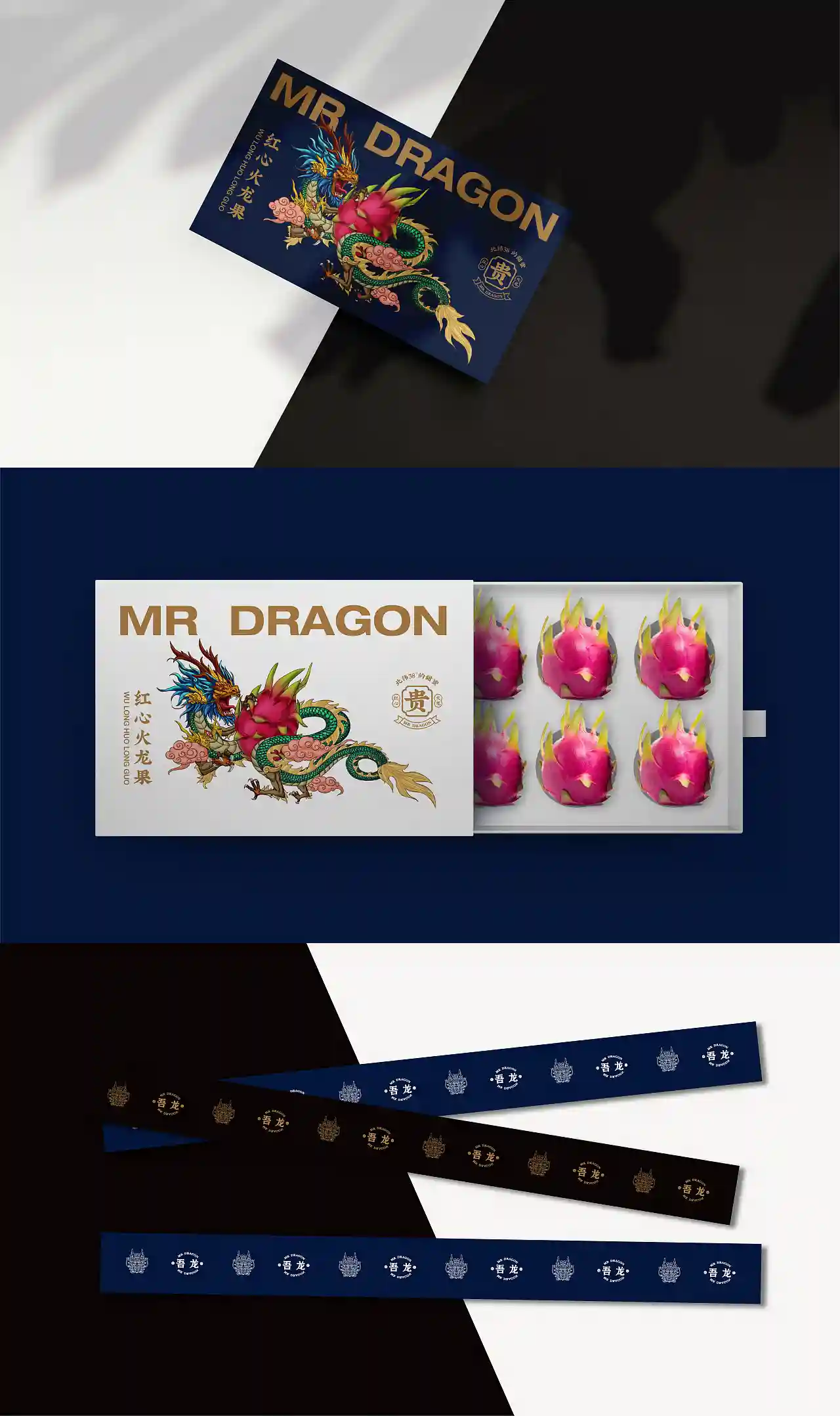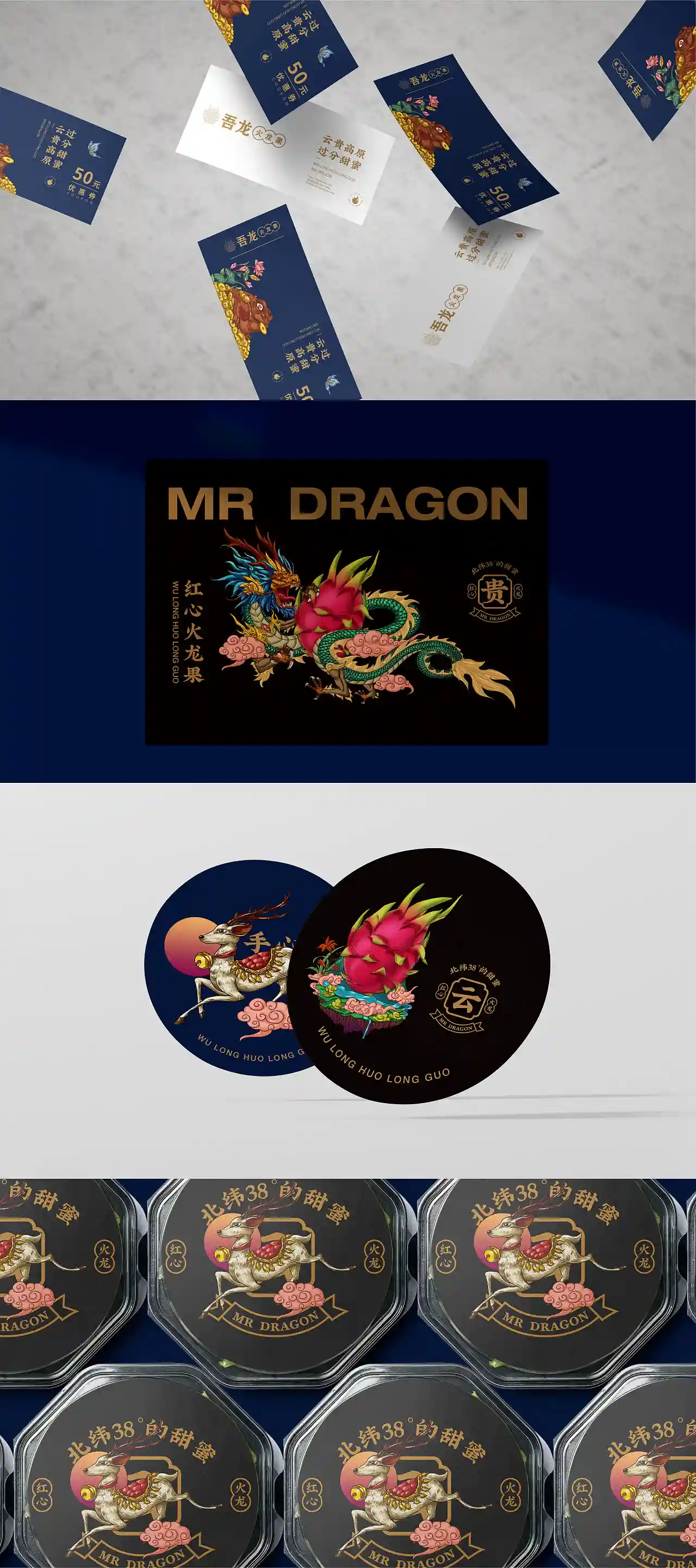 这是一个叫“吾龙”的火龙果品牌,“龙”代表火龙果,同时关联“中国龙”文化,符合现代流行的国潮风格。
